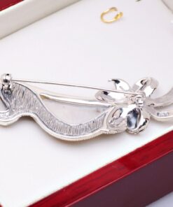 Wyjątkowa broszka w kształcie fantazyjnej wstążki, wykonana z rodowanego srebra próby 0,925. Centralnym elementem jest subtelna masa perłowa o delikatnym połysku, pięknie podkreślona lśniącymi markazytami. Eleganckie zdobienie i finezyjny kształt sprawiają, że broszka doskonale uzupełni zarówno codzienne, jak i wieczorowe stylizacje.