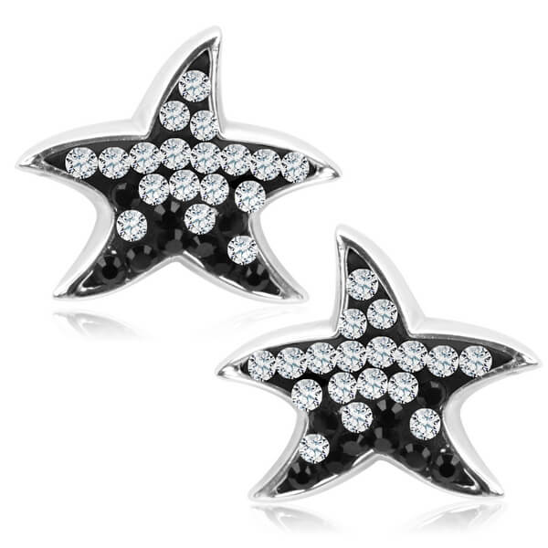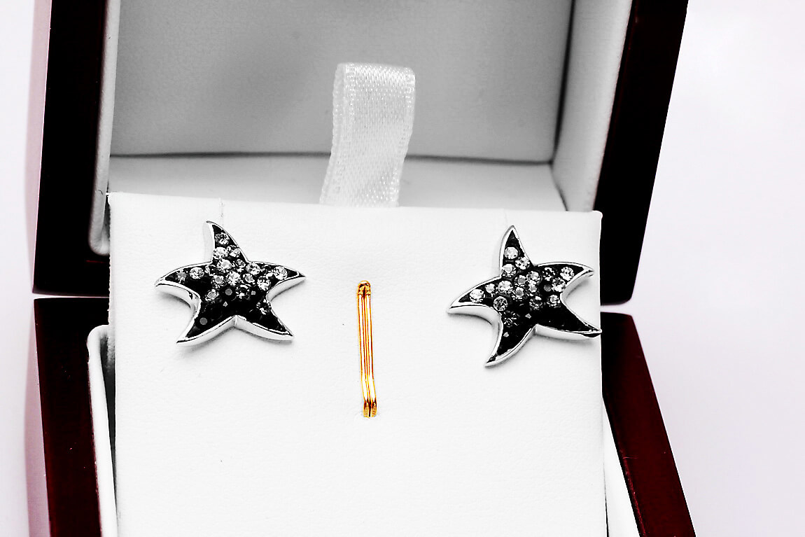 Silberne Stern-Ohrringe schwarz mit Zirkonia - KDC2918