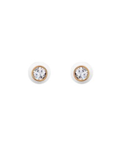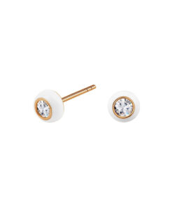 Urocze kolczyki wykonane ze srebra próby 0,925, pokryte warstwą żółtego złota. Centralnie osadzona, lśniąca cyrkonia otoczona jest delikatną, białą emalią, która nadaje całości subtelnego uroku. To elegancki, a zarazem dziewczęcy dodatek – doskonały zarówno dla młodej dziewczynki, jak i dla kobiety ceniącej minimalistyczne piękno i ponadczasową klasykę.