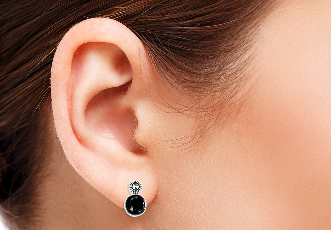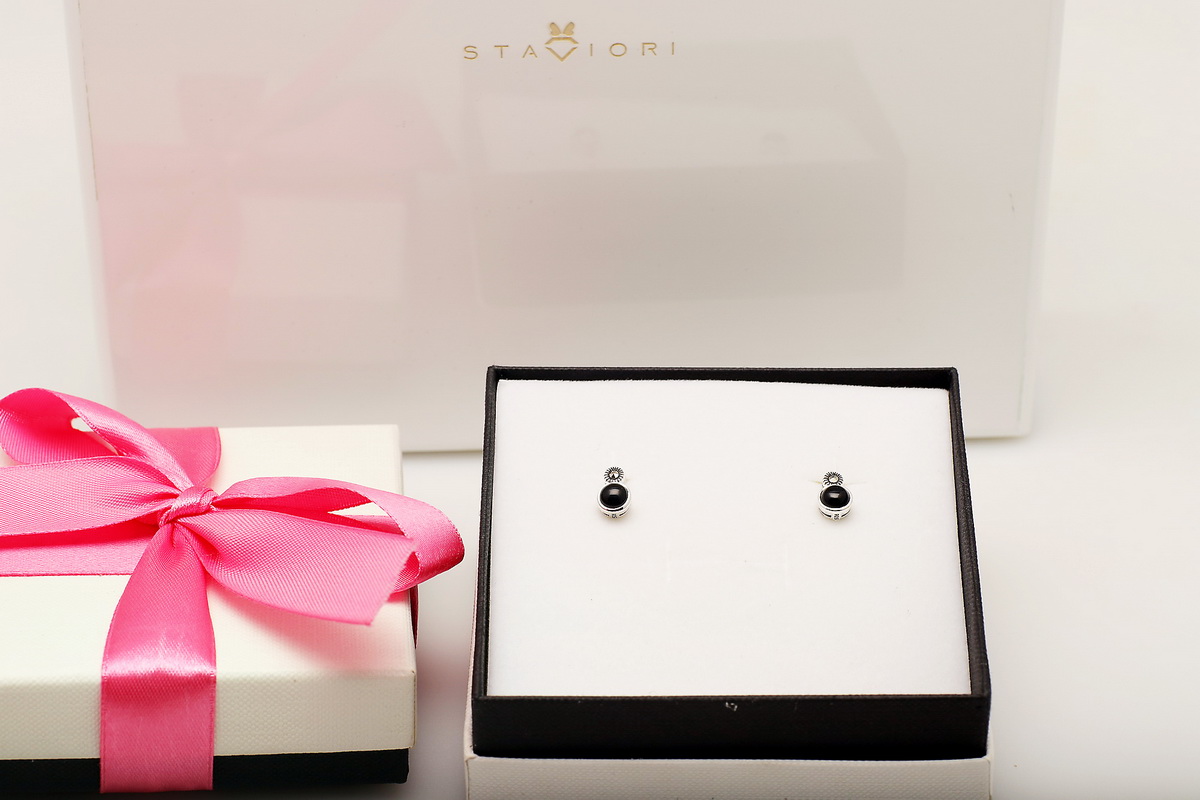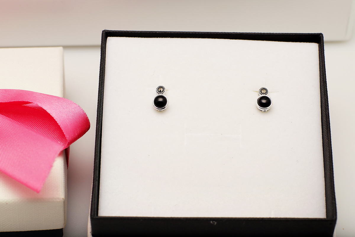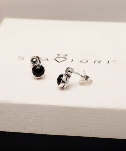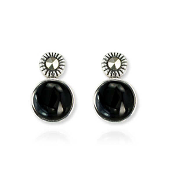 Silberne Ohrringe mit Onyx und Markasiten - KDM6140O