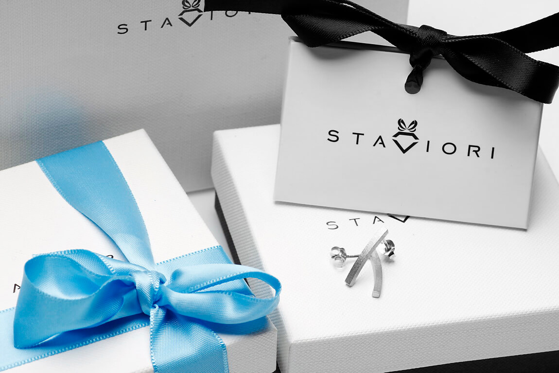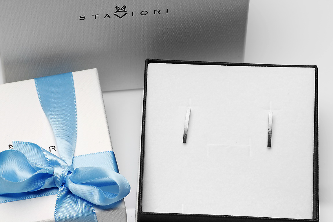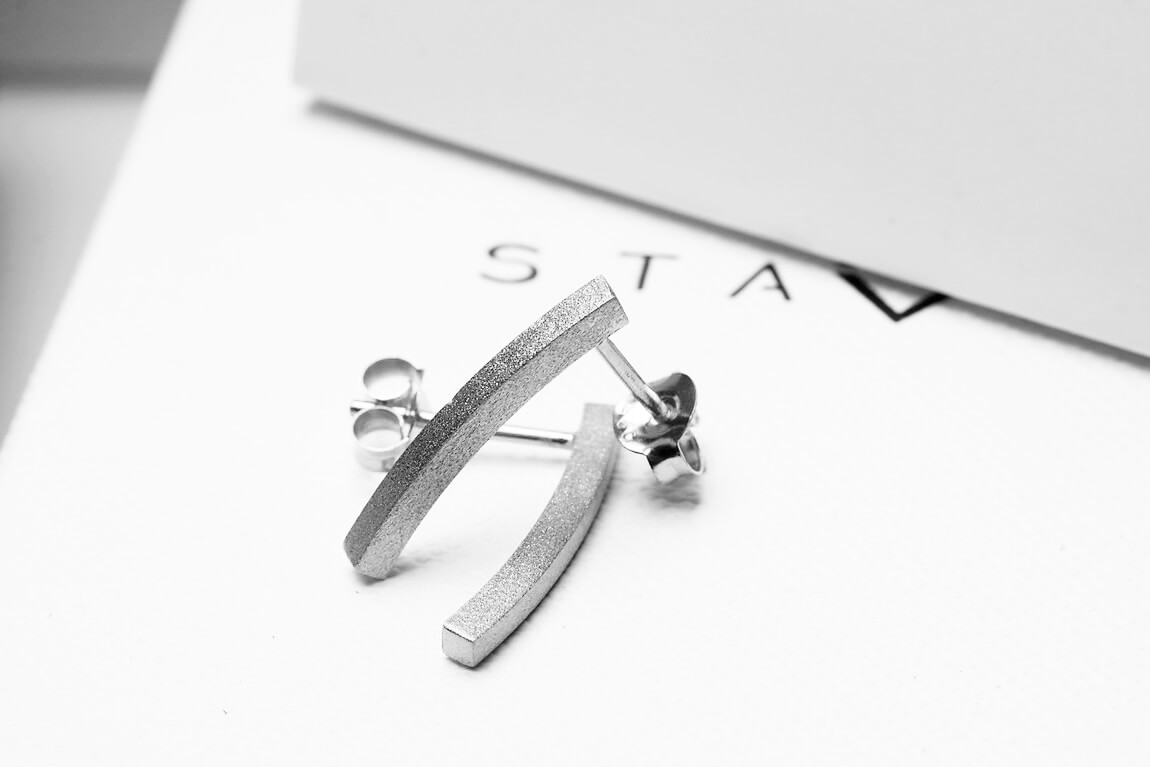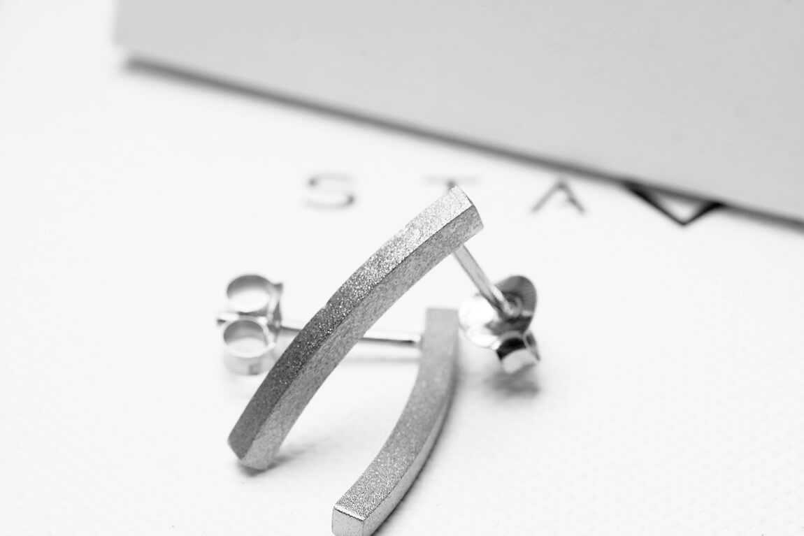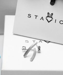 Stab-Ohrringe aus gebürstetem Silber