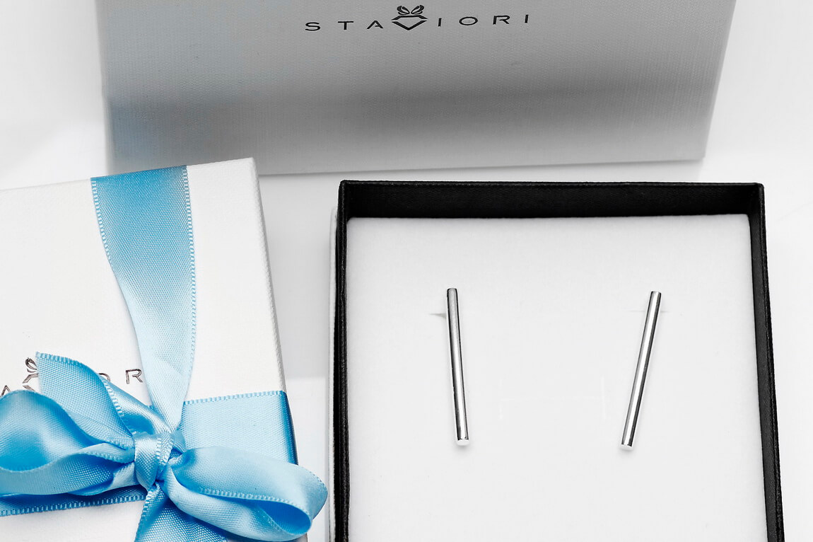 Silberne Stab-Ohrringe | 925 rhodiniertes Silber