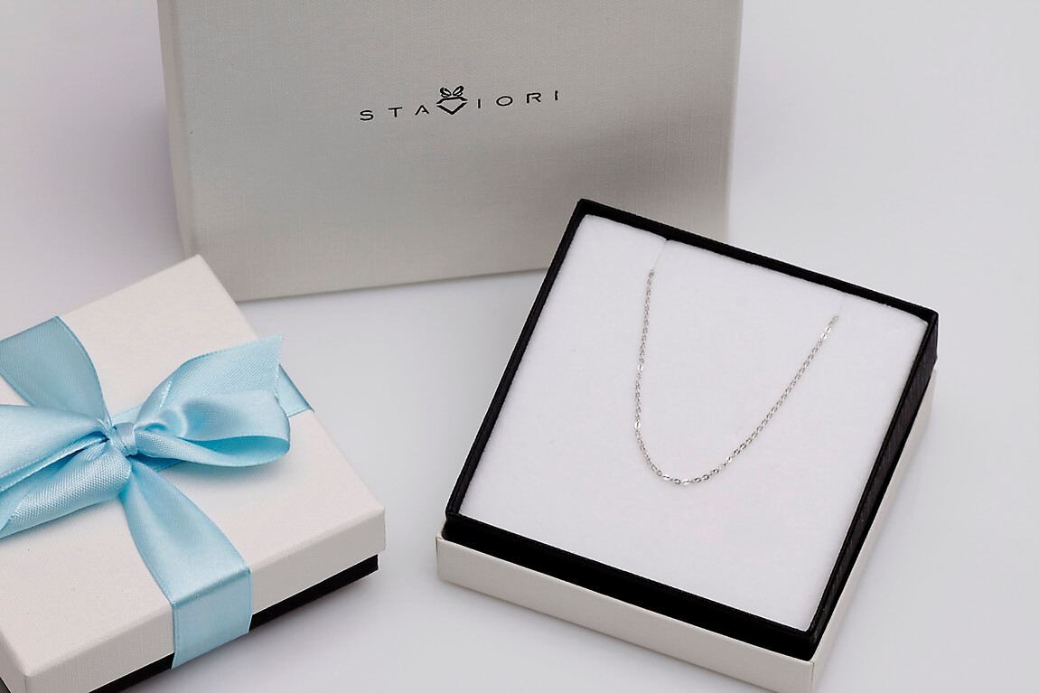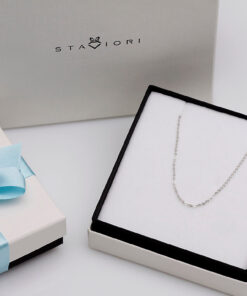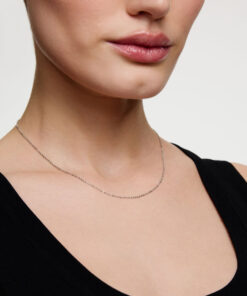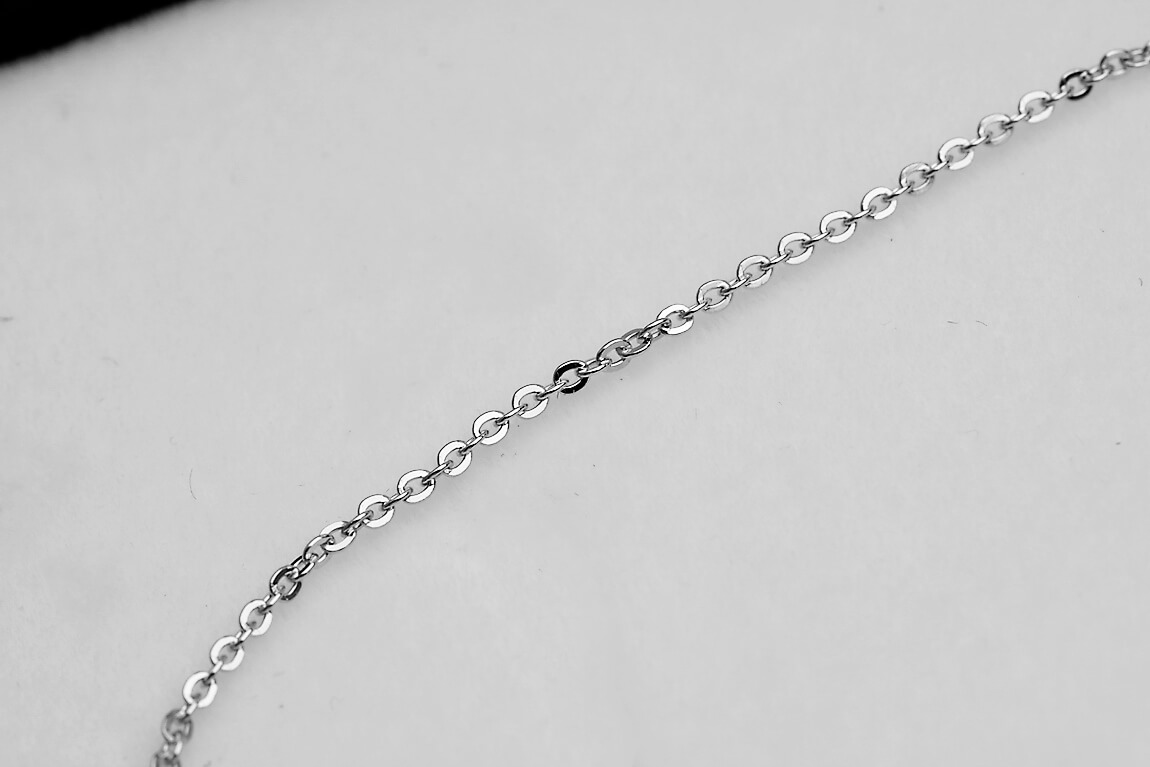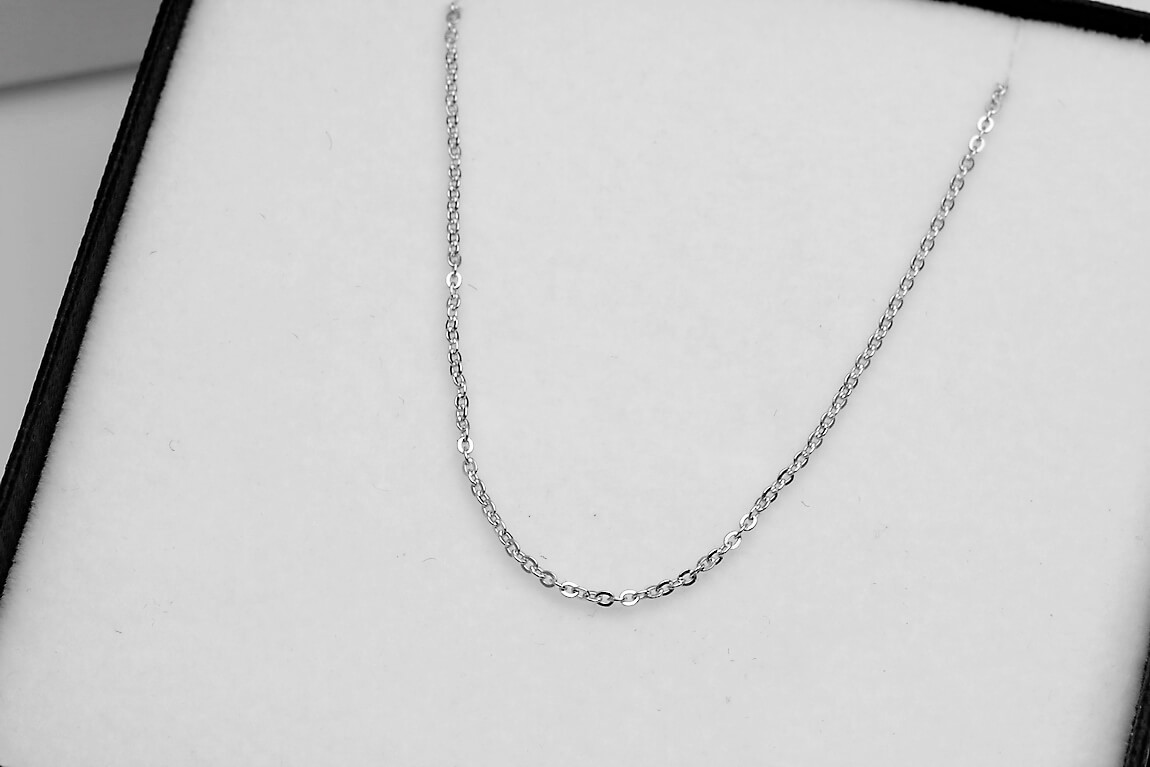 Subtelny łańcuszek typu belcher dostępny w trzech długościach: 42, 45 i 50 cm. Wykonany z rodowanego srebra próby 0,925 o delikatnej szerokości 1 mm, łączy w sobie minimalistyczny design i lekkość. Precyzyjne ogniwa tworzą gładką, połyskującą powierzchnię, idealną zarówno do noszenia solo, jak i z ulubioną zawieszką. Uniwersalny charakter tej biżuterii doda szyku każdej stylizacji.