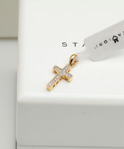 goldener Kreuzanhänger mit Diamanten und Herzen
