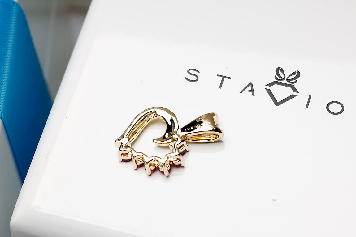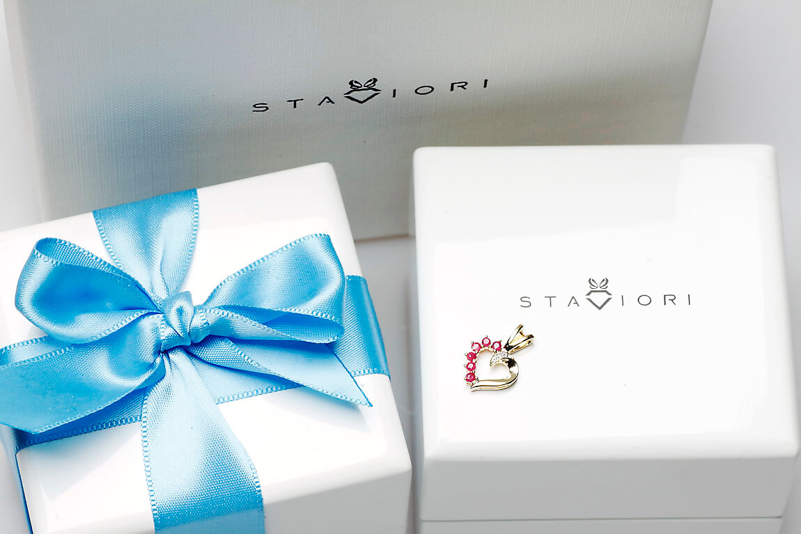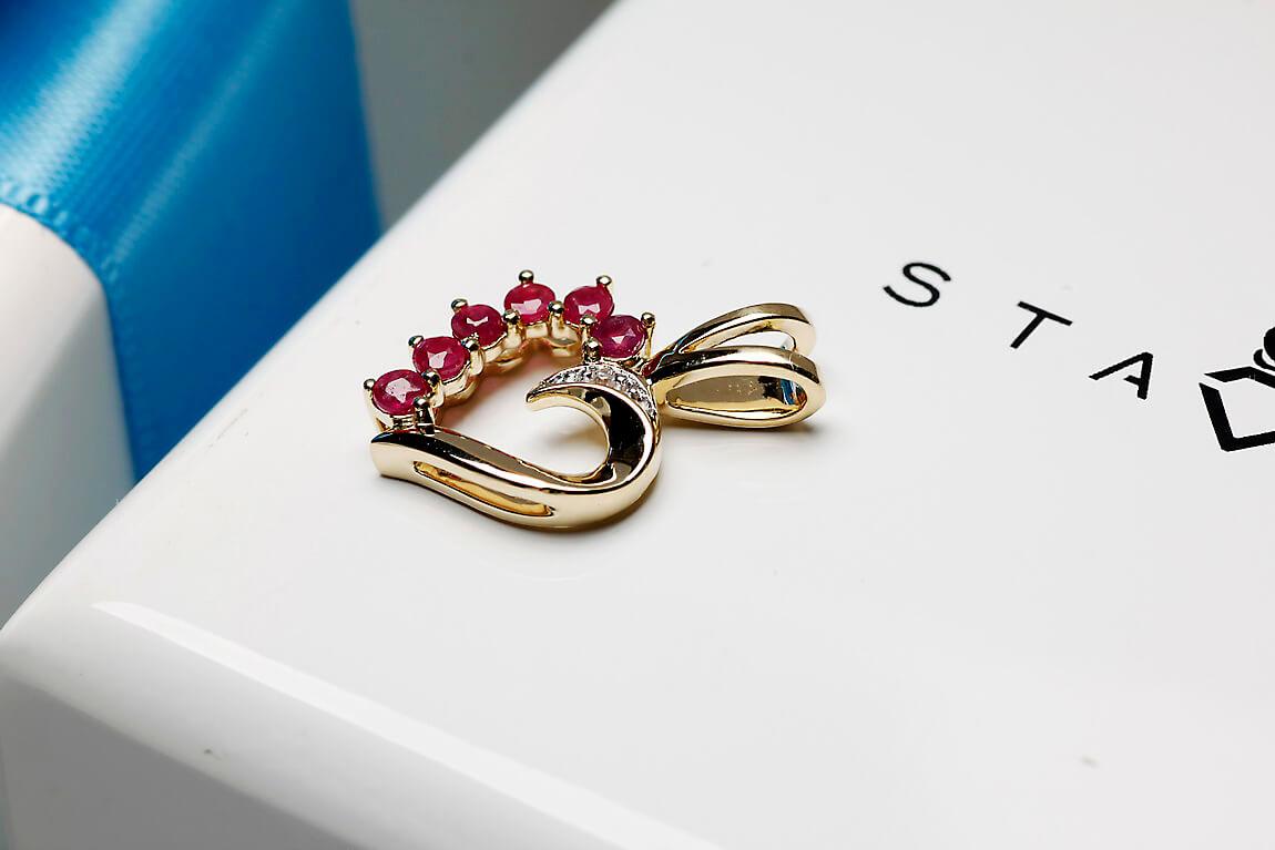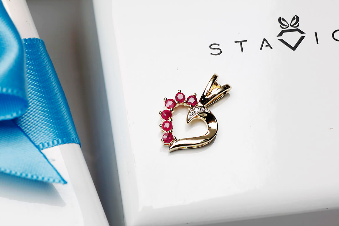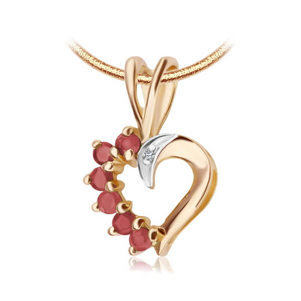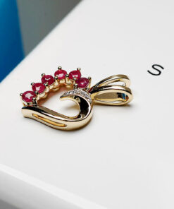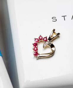 Wyjątkowy wisiorek w kształcie serca wykonany z żółtego złota 0,585, ozdobiony sześcioma naturalnymi rubinami i subtelnym diamentem. Połączenie intensywnej zieleni szmaragdów i blasku złota tworzy niezwykle kobiecą i elegancką kompozycję. Delikatny diament dodaje całości wyjątkowego uroku i klasy. To doskonały wybór na prezent dla bliskiej osoby lub piękne uzupełnienie codziennych stylizacji.