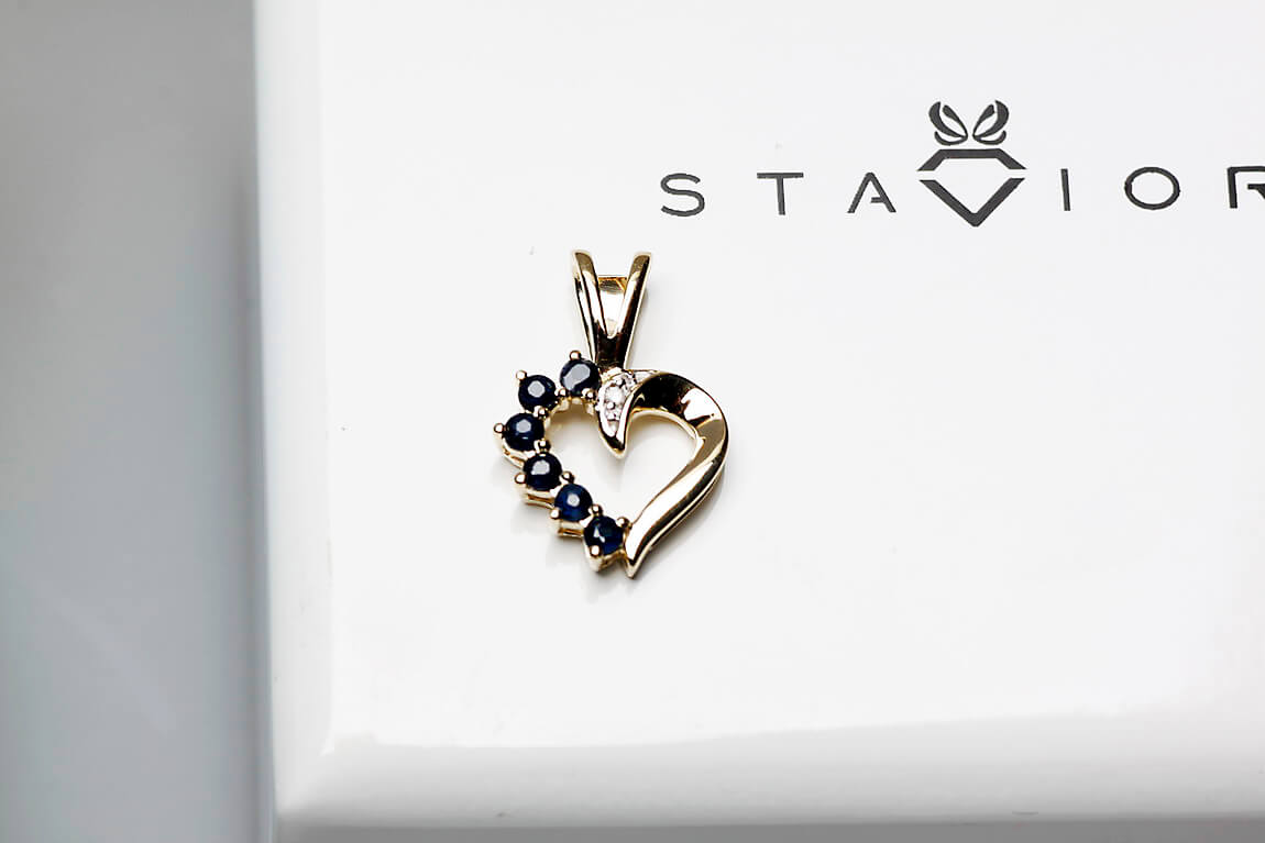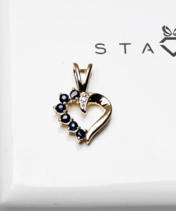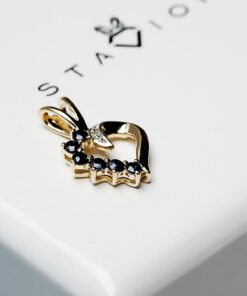 Wyjątkowy wisiorek w kształcie serca wykonany z żółtego złota 0,585, ozdobiony sześcioma naturalnymi szafirami i subtelnym diamentem. Połączenie intensywnej zieleni szmaragdów i blasku złota tworzy niezwykle kobiecą i elegancką kompozycję. Delikatny diament dodaje całości wyjątkowego uroku i klasy. To doskonały wybór na prezent dla bliskiej osoby lub piękne uzupełnienie codziennych stylizacji.