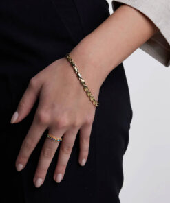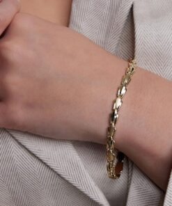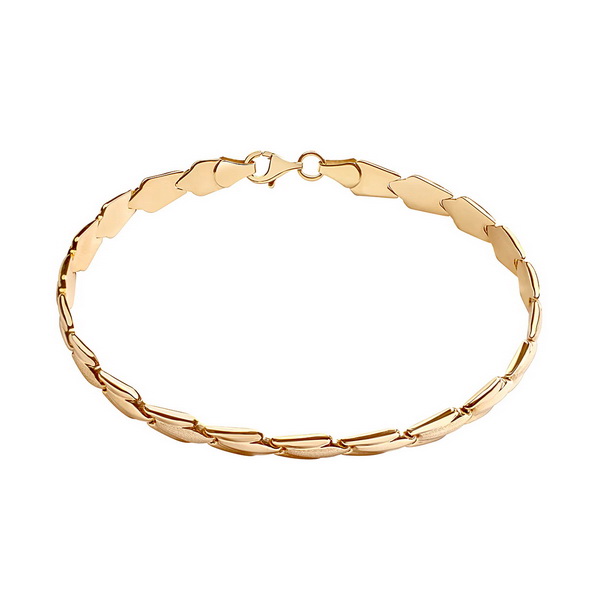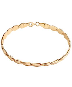 Klasyczna bransoleta wykonana z żółtego złota próby 333. Gładkie, polerowane ogniwa o charakterystycznym, geometrycznym kształcie nadają jej ponadczasowej elegancji. Solidna i wygodna w noszeniu, stanowi doskonały wybór dla osób ceniących prostotę i wyrafinowany styl.