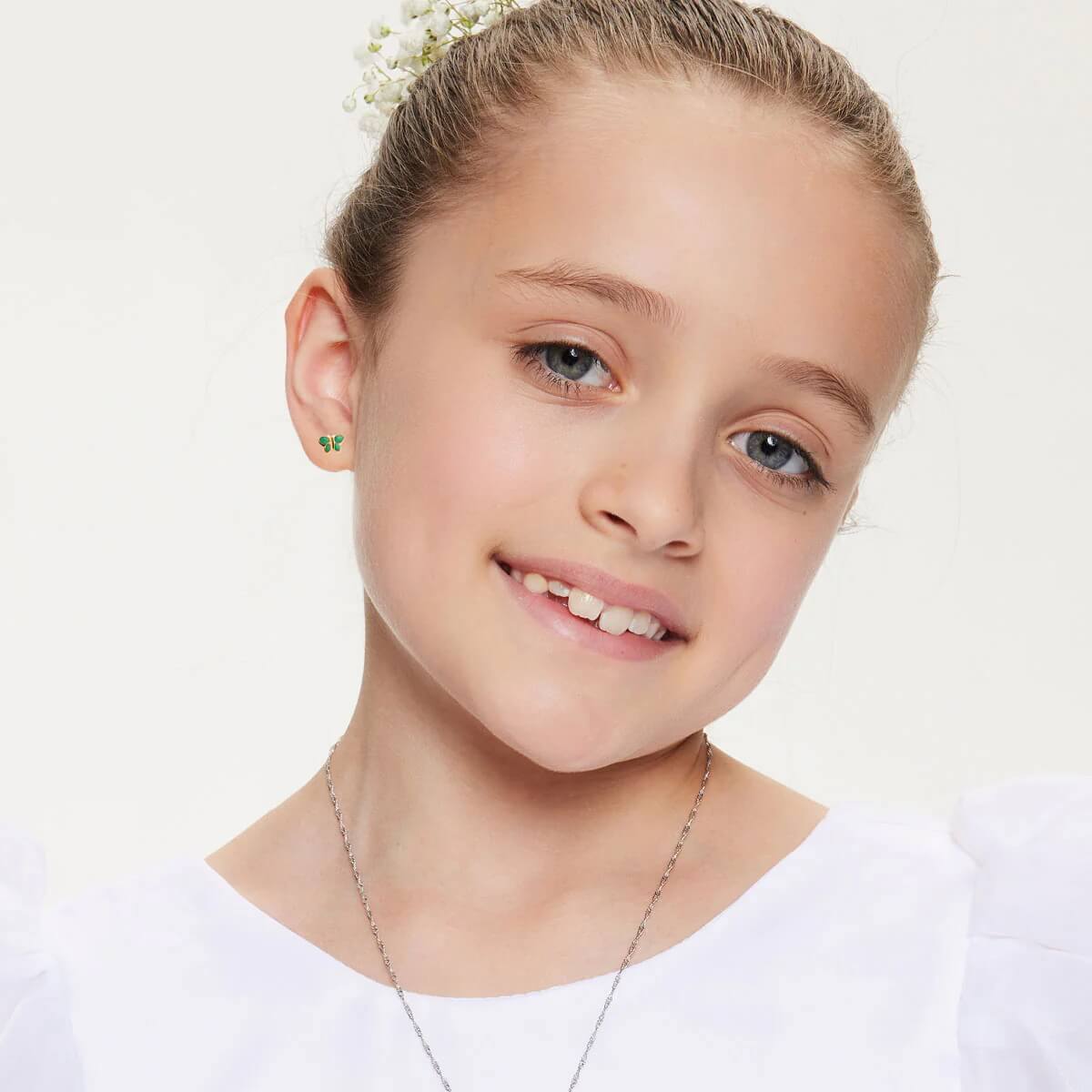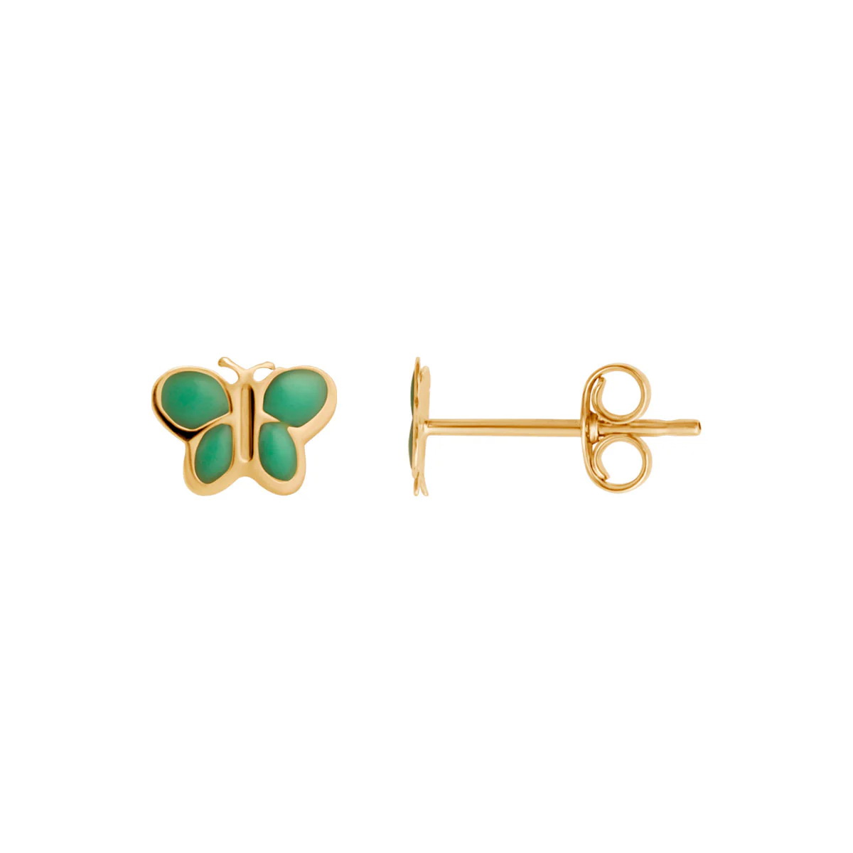 Kinderohrringe mit goldenem Schmetterling und mintfarbener Emaille