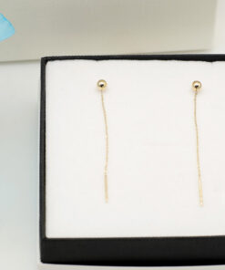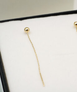 Nowoczesne, złote kolczyki przewlekane wykonane z żółtego złota próby 585. Delikatny łańcuszek oraz gładka kulka tworzą wyjątkowo subtelną i minimalistyczną kompozycję, która dodaje szyku każdej stylizacji. Idealny wybór dla kobiet ceniących lekkość, swobodę i niepowtarzalny styl. Kolczyki te doskonale sprawdzą się zarówno na co dzień, jak i na specjalne okazje.