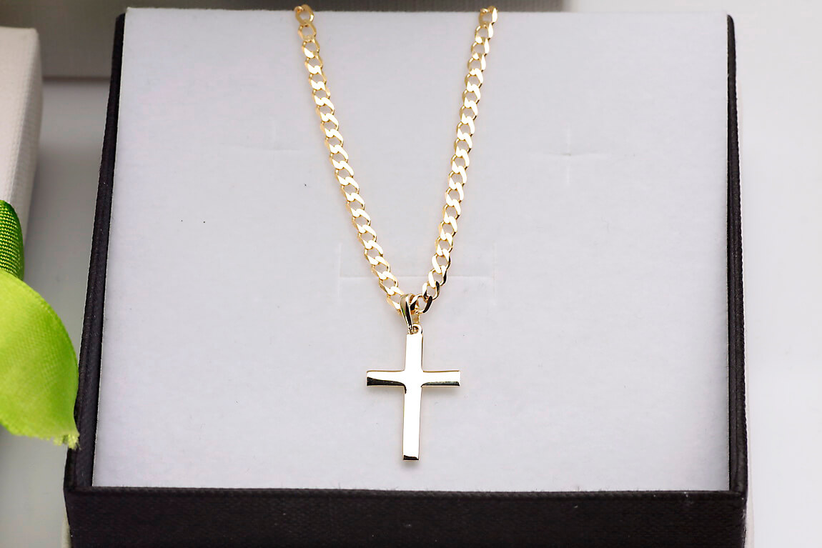 Das minimalistische Kreuz aus 0,333er Gelbgold ist ein elegantes Symbol des Glaubens und der spirituellen Kraft. Seine schlichte Form und die glatte, glänzende Oberfläche machen es zu einem zeitlosen Accessoire, das sich perfekt in das alltägliche Styling einfügt. Ein vielseitiges Design, das sowohl für Männer als auch für Frauen geeignet ist.