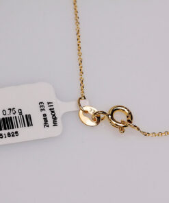Delikatny łańcuszek o klasycznym splocie Ankier wykonany z żółtego złota próby 0,333 to subtelny dodatek, który pięknie podkreśli każdą stylizację. Jego lekkość i elegancja sprawiają, że doskonale prezentuje się zarówno solo, jak i z ulubioną zawieszką. To wybór dla osób ceniących ponadczasową prostotę i wyrafinowany styl.
