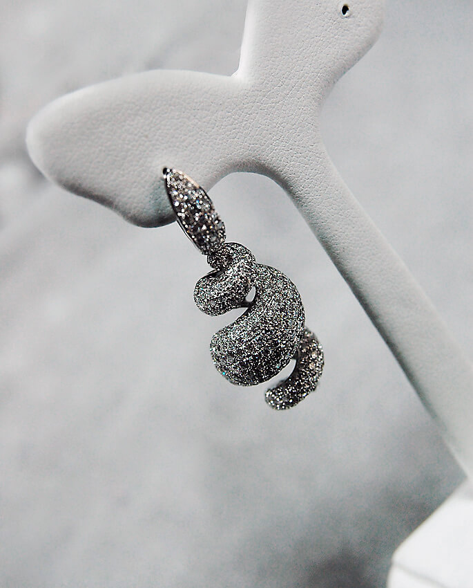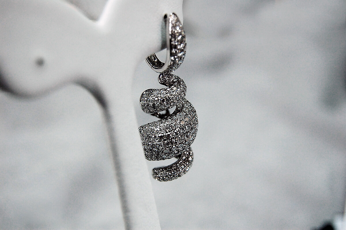 Wyjątkowe kolczyki z białego złota 18K, które urzekają swoją formą i niezwykłym blaskiem. Fantazyjny, spiralny kształt zdobi aż 538 diamentów o łącznej masie 5,55 ct, tworząc spektakularny efekt świetlny przy każdym ruchu. Luksus i wyrafinowanie w najczystszej postaci – idealne na wielkie wyjścia i wyjątkowe okazje. To biżuteria, która nie tylko zachwyca, ale i zapada w pamięć.