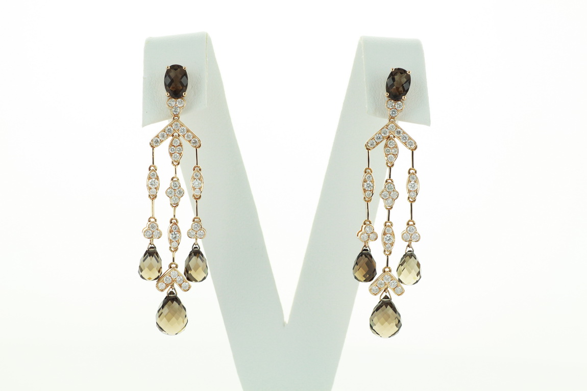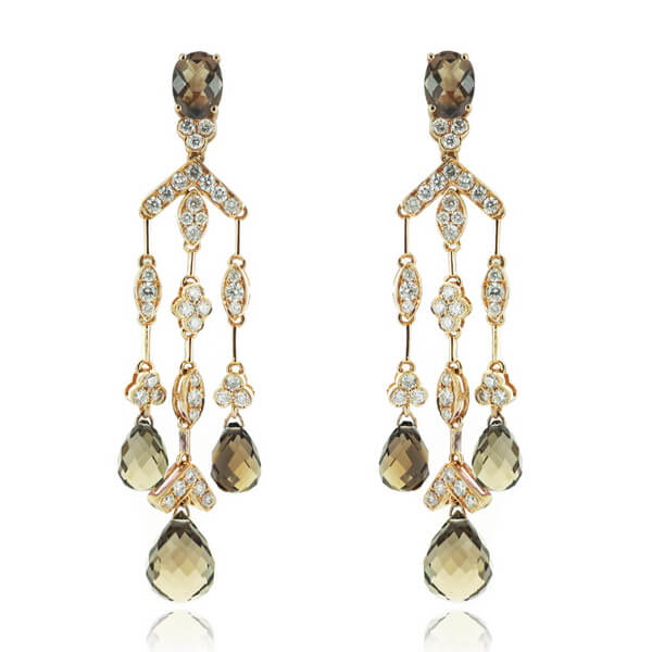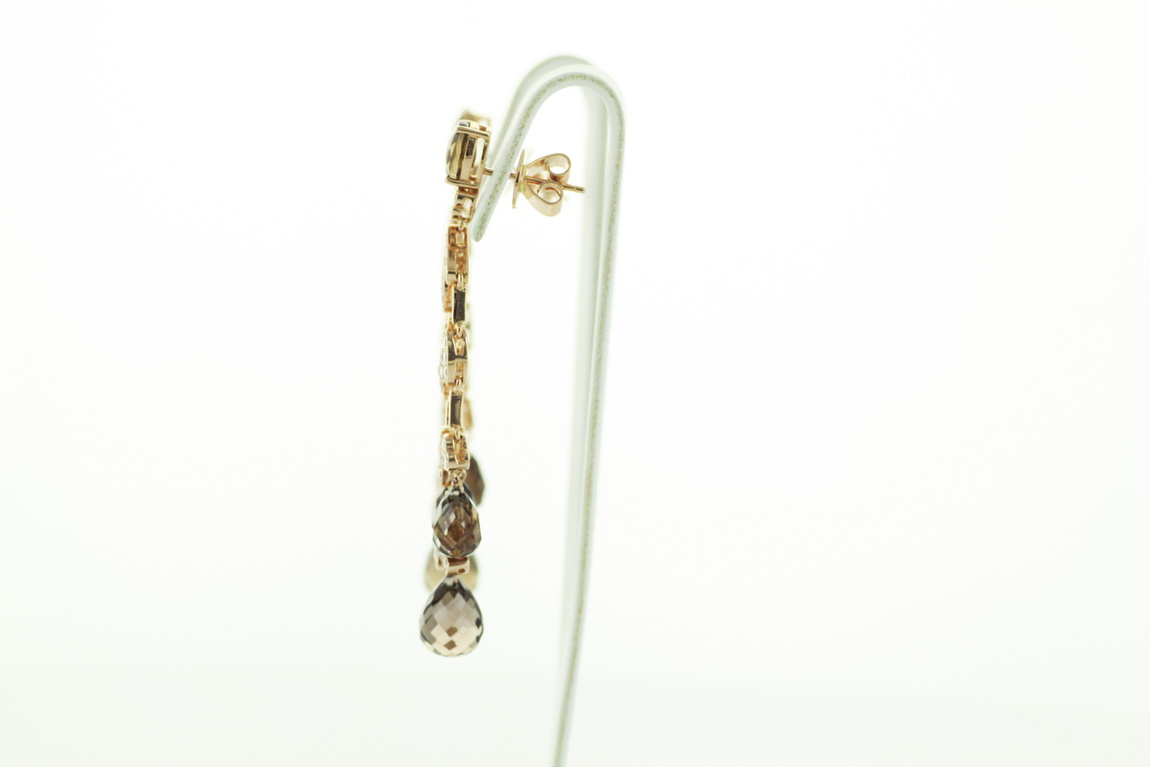 Exclusive | 750 yellow gold earrings with smoky quartz and diamonds