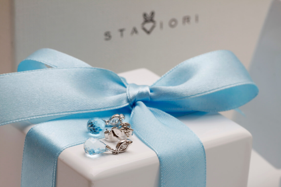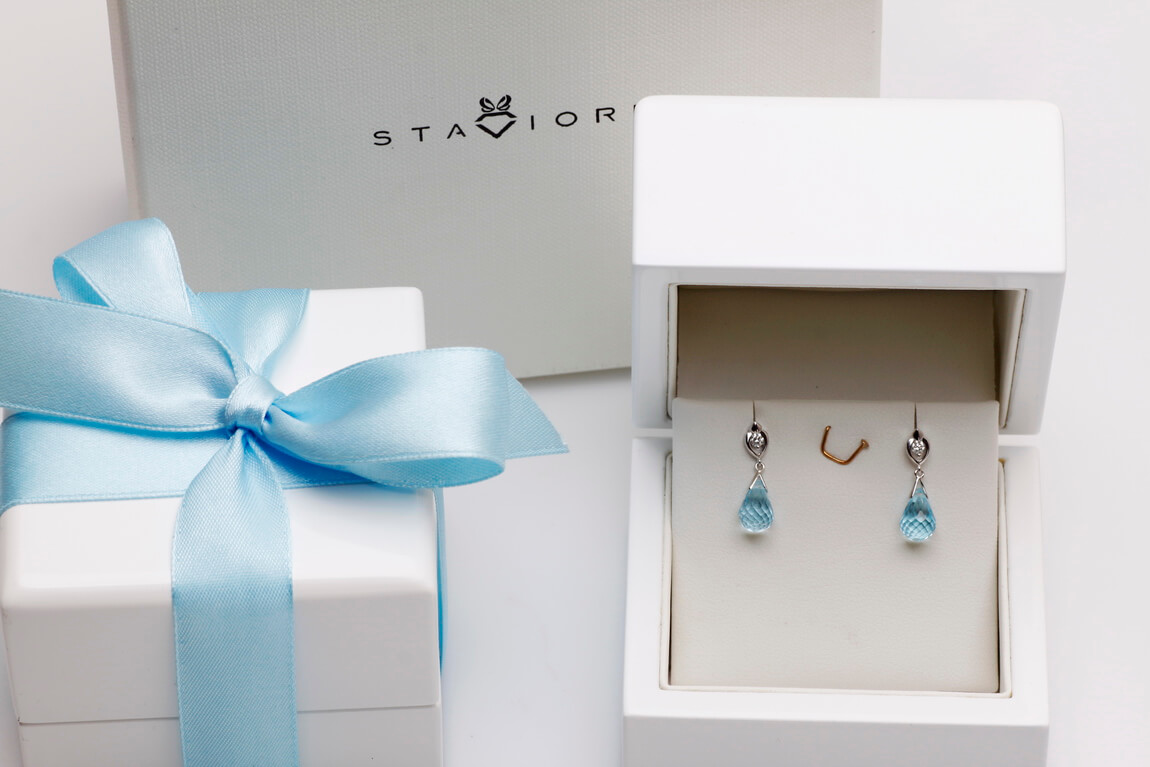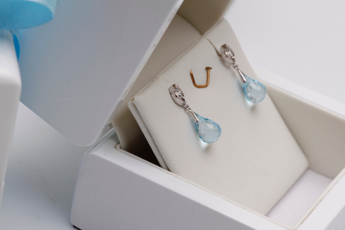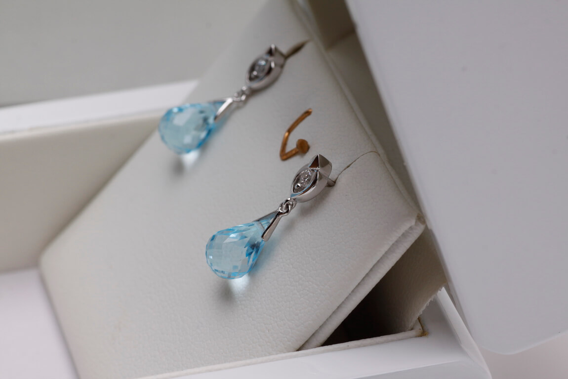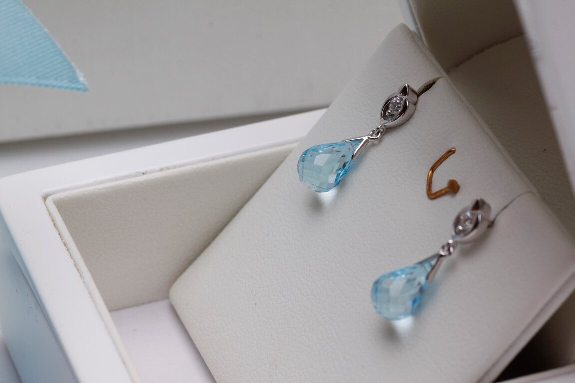 Exclusive | white gold teardrop earrings with topaz and diamonds