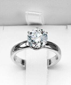 Zjawiskowy pierścionek zaręczynowy wykonany z najwyższej jakości białego złota próby 0,750. W centrum kompozycji osadzono imponujący brylant o masie aż 2,00 ct, który olśniewa czystością i barwą G. Klasyczna oprawa z sześcioma łapkami subtelnie podkreśla piękno kamienia, dając mu przestrzeń do maksymalnego błysku. To luksusowa propozycja dla wyjątkowej kobiety – symbol trwałej miłości i elegancji w najczystszej formie.
