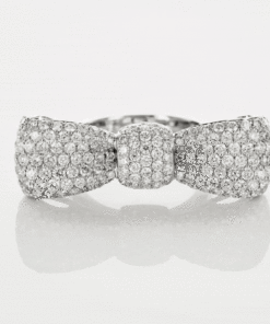 A stunning 0.750 white gold ring with a bow-shaped crown that captivates with its extraordinary precision craftsmanship and dazzling brilliance. As many as 175 diamonds weighing a total of 2.84 ct create a mesmerising sparkle that attracts the eye and exudes elegance. The wide form and striking finish make this model an exceptional choice for women who appreciate luxury and distinctive style. Ideal both as a special gift and as a spectacular adornment to an evening outfit.