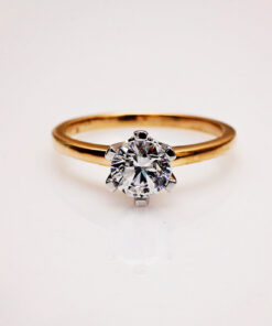 A classic and extremely elegant engagement ring made from a combination of yellow and white 0.750 gold. At its heart is an exceptional diamond of impressive 1.00ct, which shines with extraordinary brilliance in a six-set setting. The simple, slender ring highlights the beauty and size of the diamond, making this model a truly timeless symbol of love. A perfect choice for those who appreciate luxury and classics at their best.