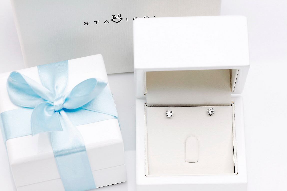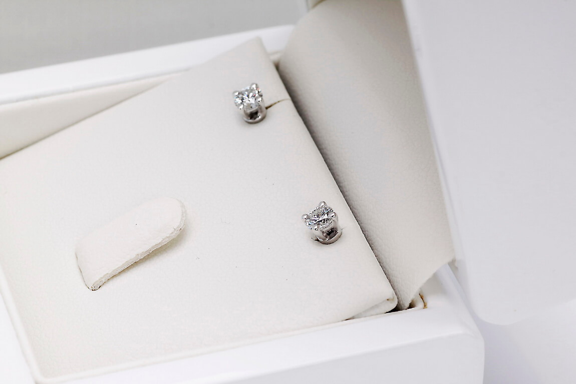 Classic and timeless earrings in 0.585 white gold with dazzling diamonds weighing a total of 0.50ct. The minimalist form of the chaton with four paw feet emphasises the natural brilliance of the diamonds, adding a unique elegance to the whole. Perfect as everyday jewellery or a subtle accessory for special occasions. A perfect choice for women who appreciate discreet luxury.