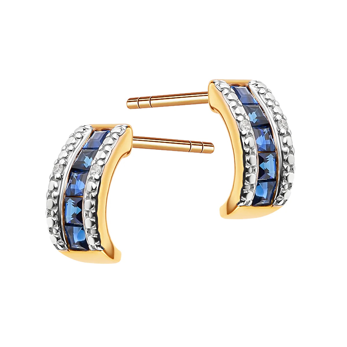 Piękne kolczyki z diamentami i szafirami w złocie 585 | KZD21293