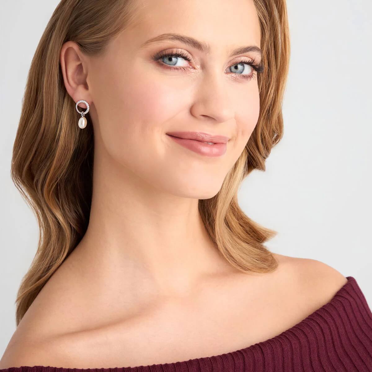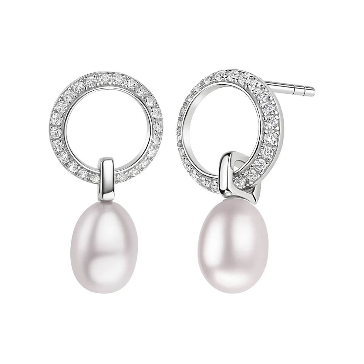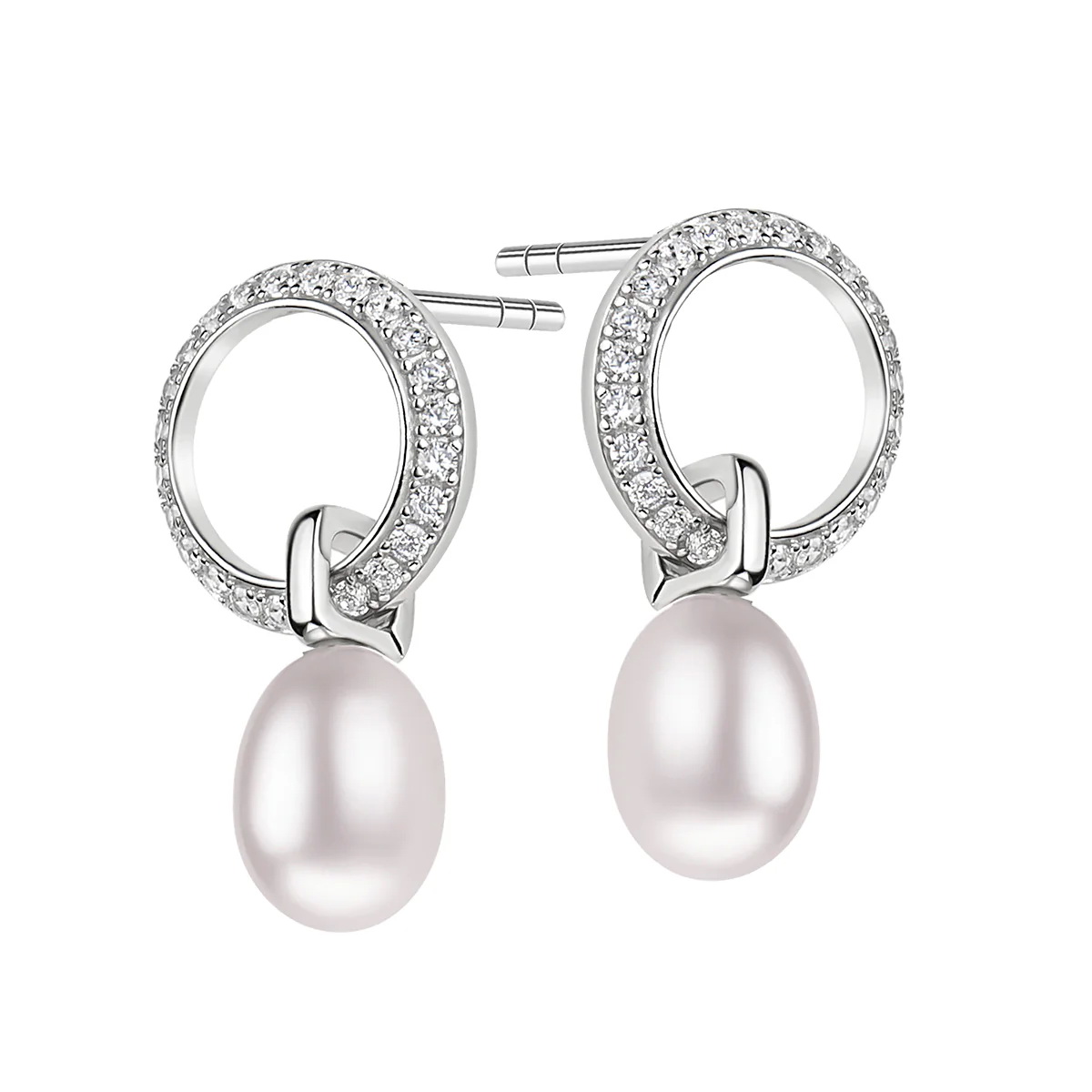 Piękne wiszące srebrne kolczyki z naturalnymi perłami i cyrkoniami | KS55808