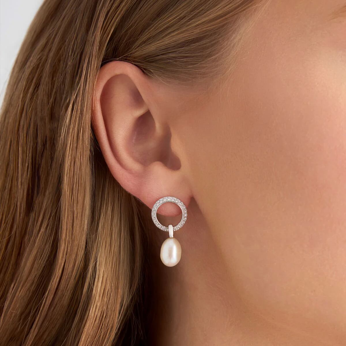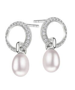Olśniewające kolczyki wykonane z najwyższej próby srebra 925, które łączą w sobie klasyczną elegancję z romantycznym charakterem. Centralnym punktem kompozycji są lśniące białe perły hodowane o pięknym kształcie kropli, zawieszone pod biżuteryjnymi obręczami wysadzanymi lśniącymi cyrkoniami. Precyzyjny szlif kamieni w połączeniu z satynowym blaskiem pereł tworzy wyjątkowo wyrazisty i luksusowy dodatek. To biżuteria stworzona na wielkie wyjścia i wyjątkowe okazje, która w cudowny sposób rozświetla twarz i dodaje szyku każdej wieczorowej kreacji.