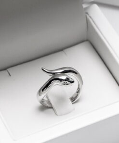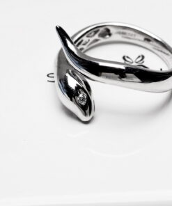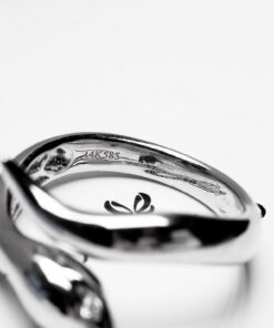 Unikatowy pierścionek z białego złota próby 0,585 w formie zmysłowego węża – symbolu siły, transformacji i tajemniczości. Oczy zdobią dwa subtelne brylanty o łącznej masie 0,03 ct, które dodają projektowi eleganckiego blasku i głębi. Zmysłowa linia i precyzyjne wykonanie sprawiają, że pierścionek idealnie wpisuje się w styl nowoczesnej kobiety ceniącej oryginalność. Model dostępny również w innych odcieniach złota – na indywidualne zamówienie.