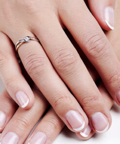 Phenomenal engagement ring made of a combination of white and yellow gold 0.585 is a proposal for women who appreciate the classics with a touch of modernity. Harmoniously intertwined lines of the ring subtly entwine a sparkling diamond weighing 0.15 ct, creating a romantic composition full of elegance and lightness. The brilliant cut of the stone gives it a unique sparkle that draws the eye in. The perfect choice for a special moment of declaration - timeless yet unconventional.