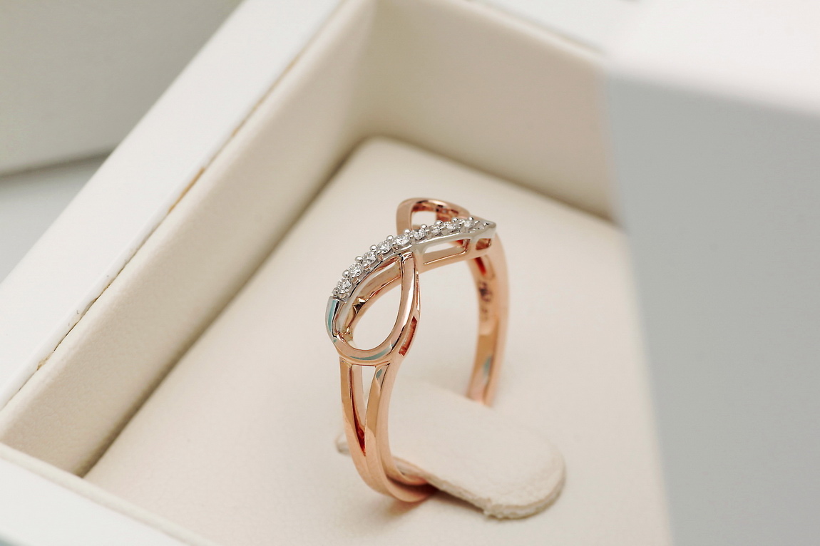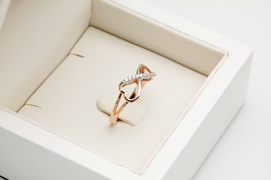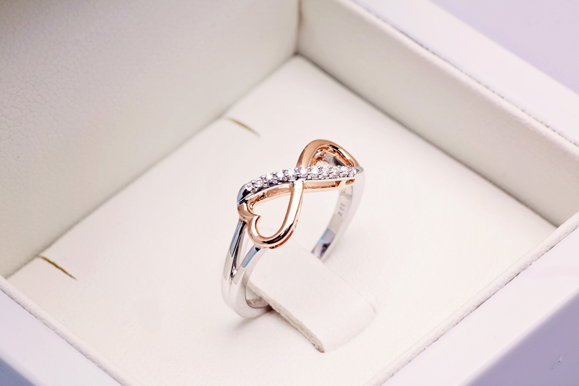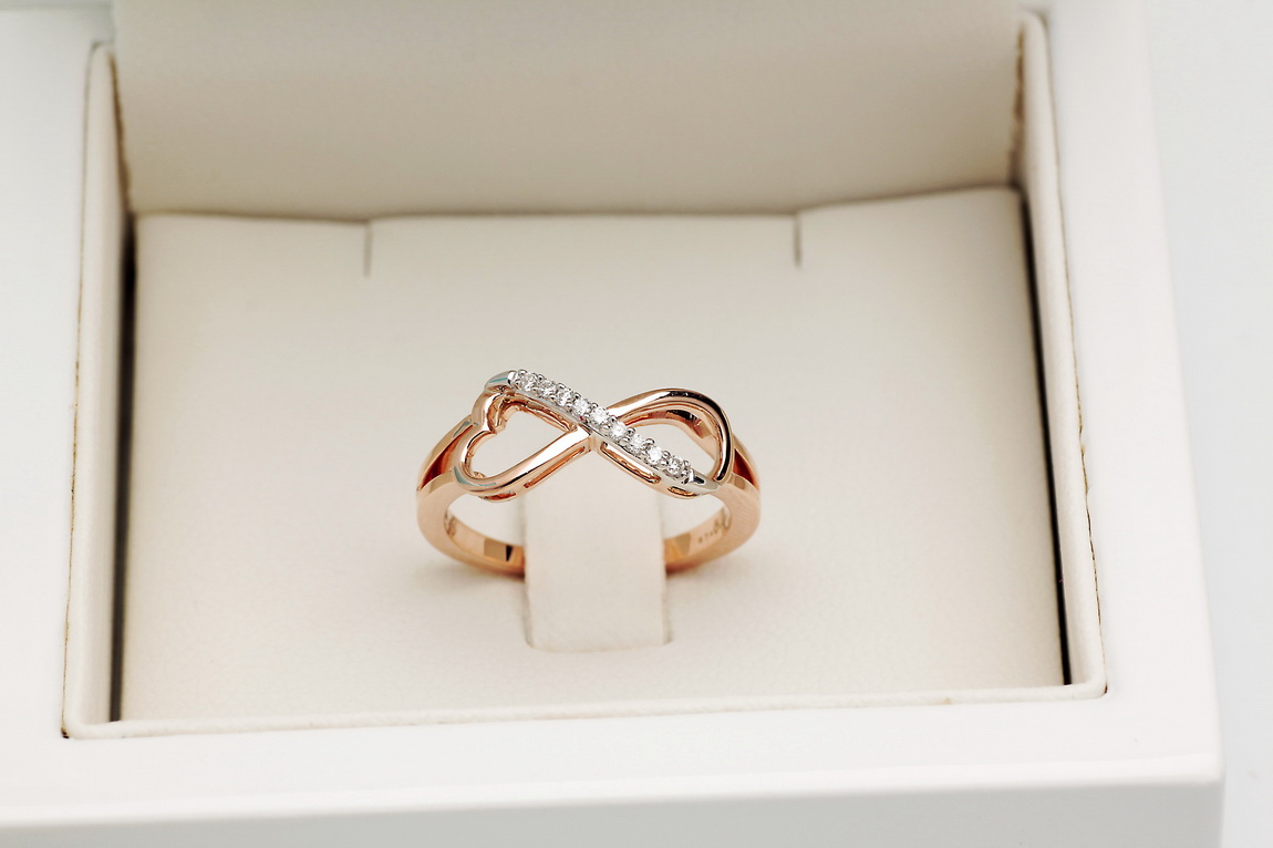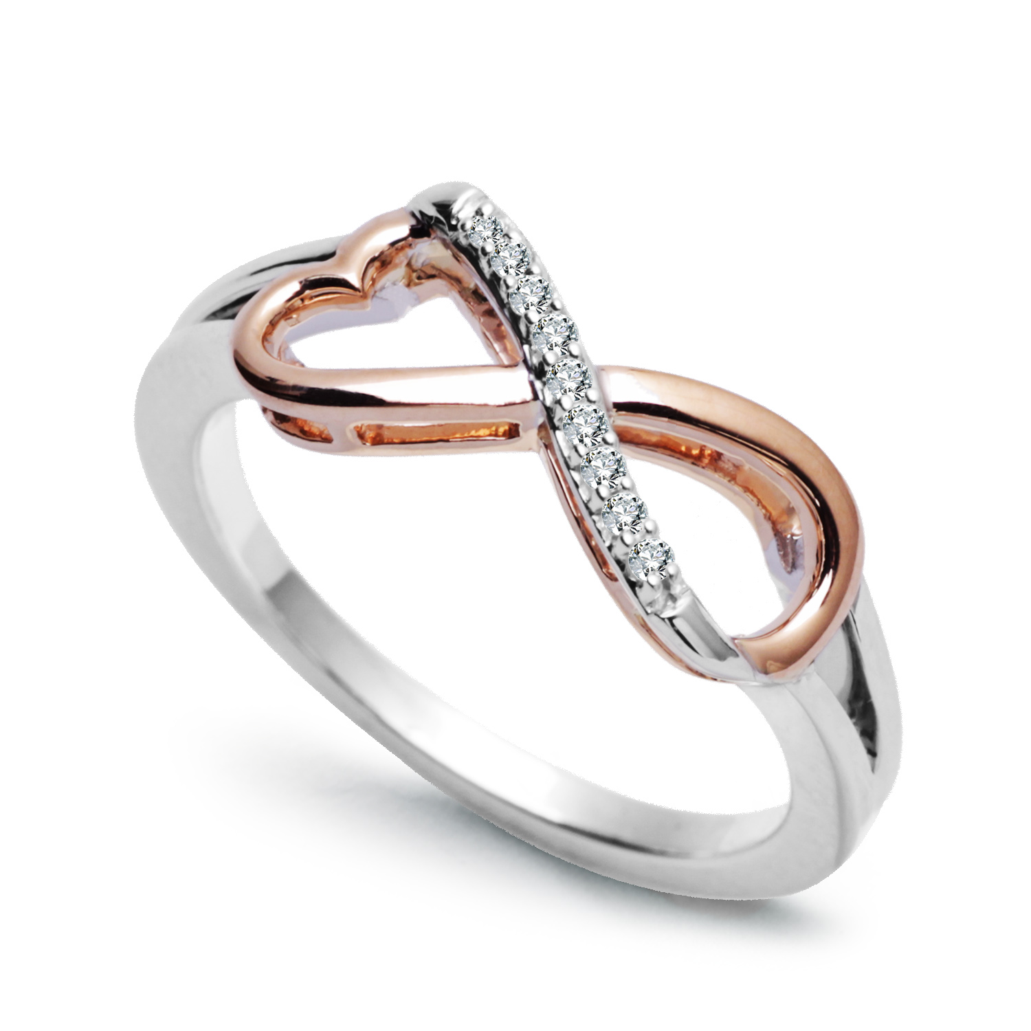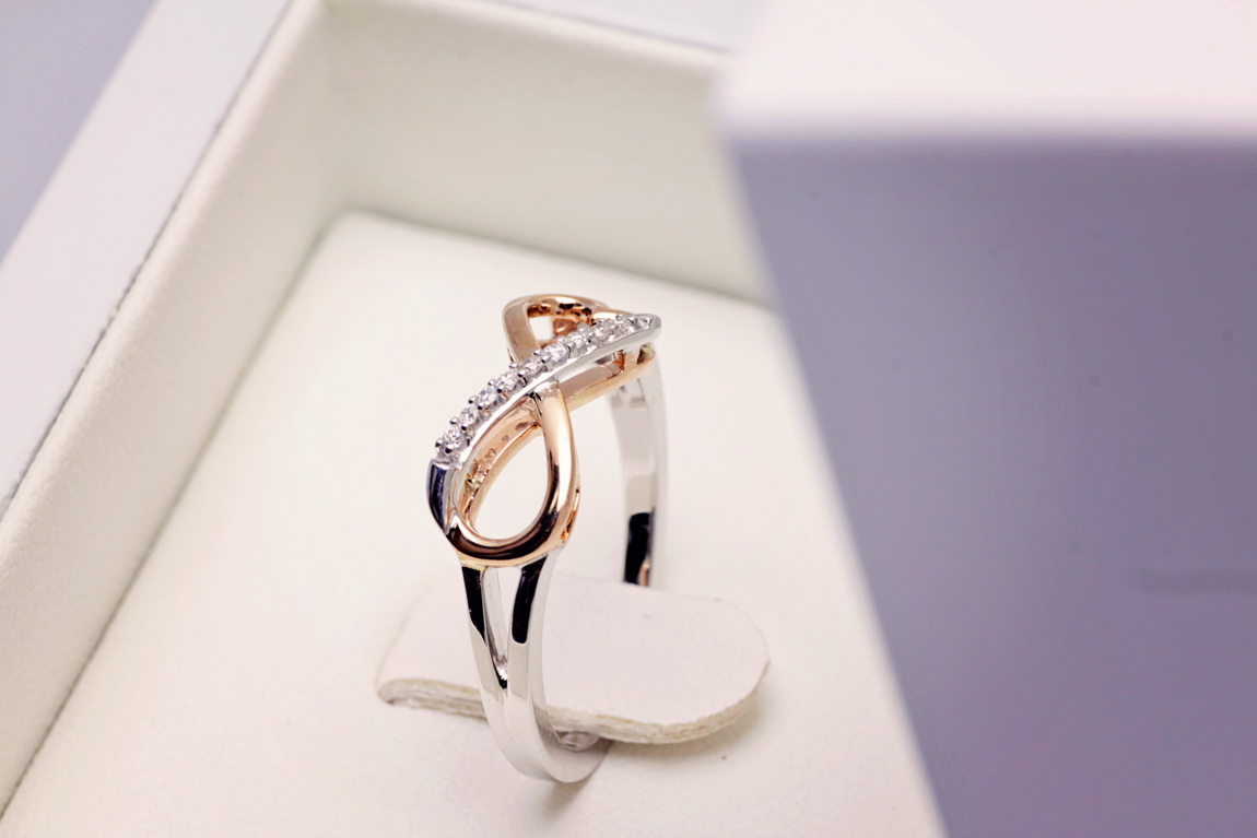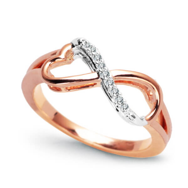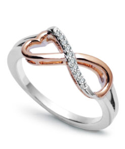 infinite love ring in rose and white gold with diamonds