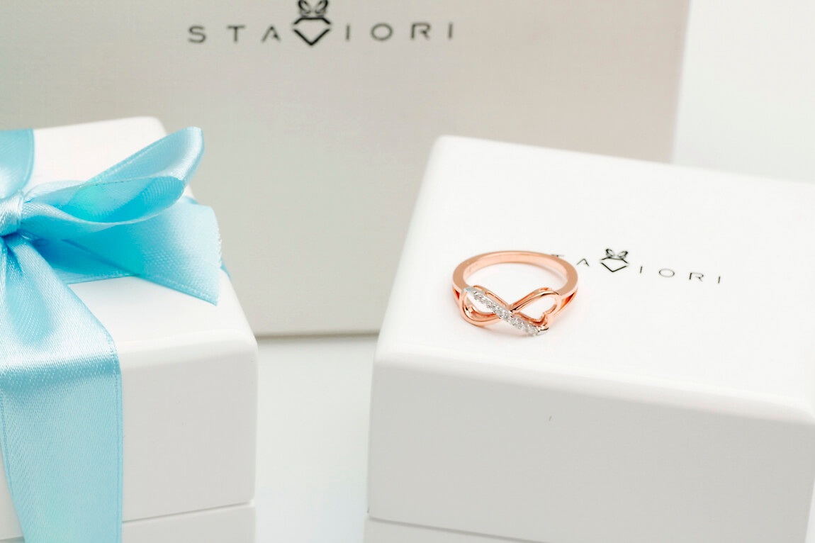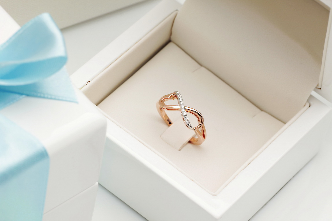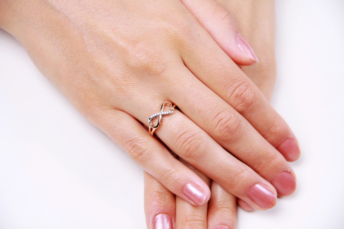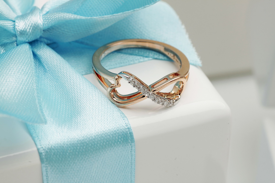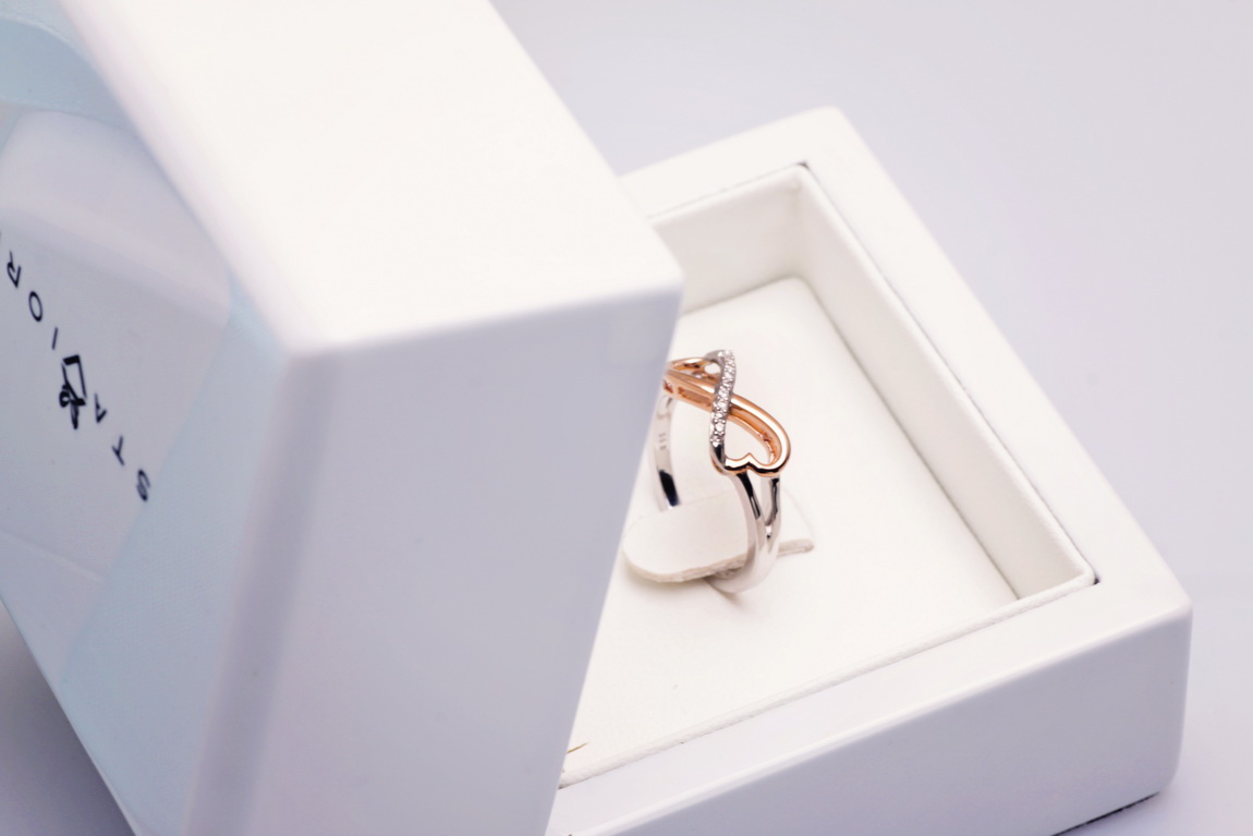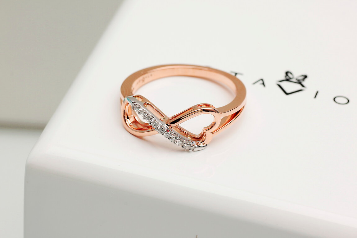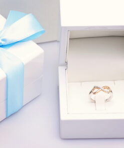 infinite love ring in rose and white gold with diamonds