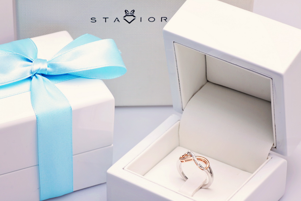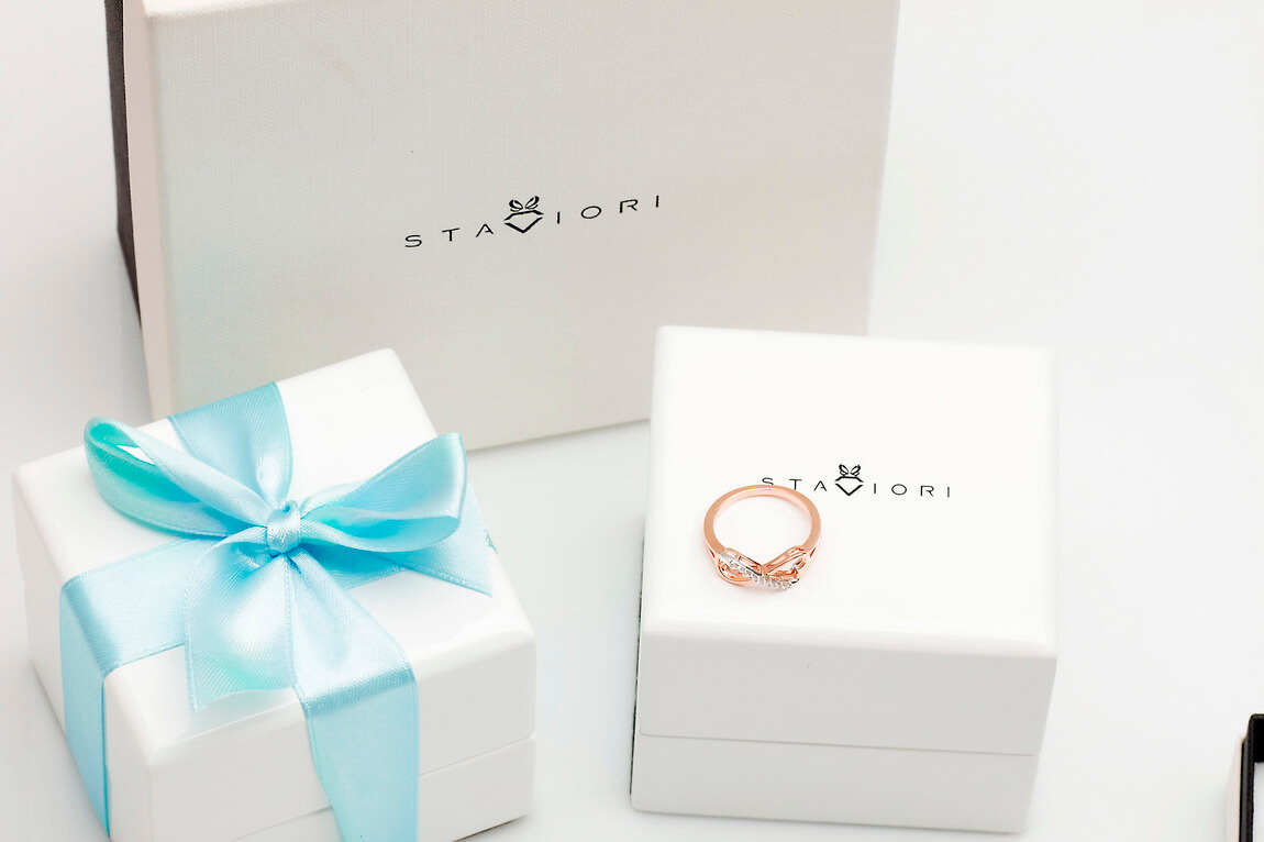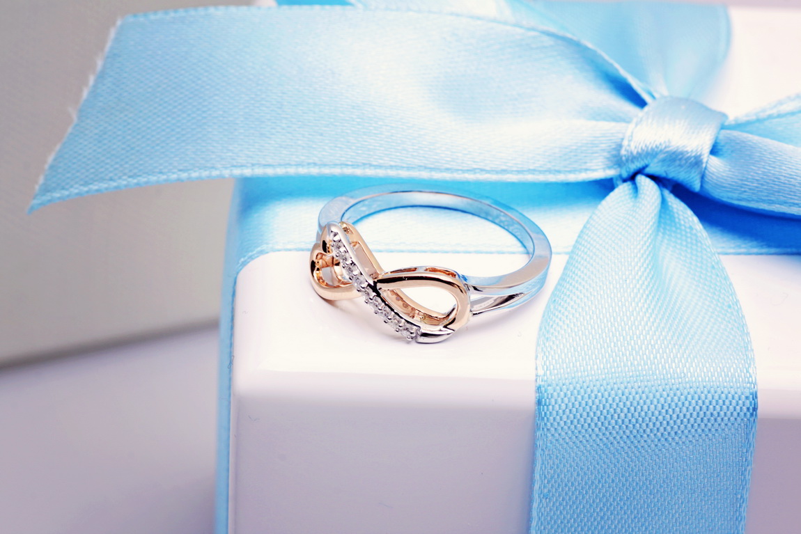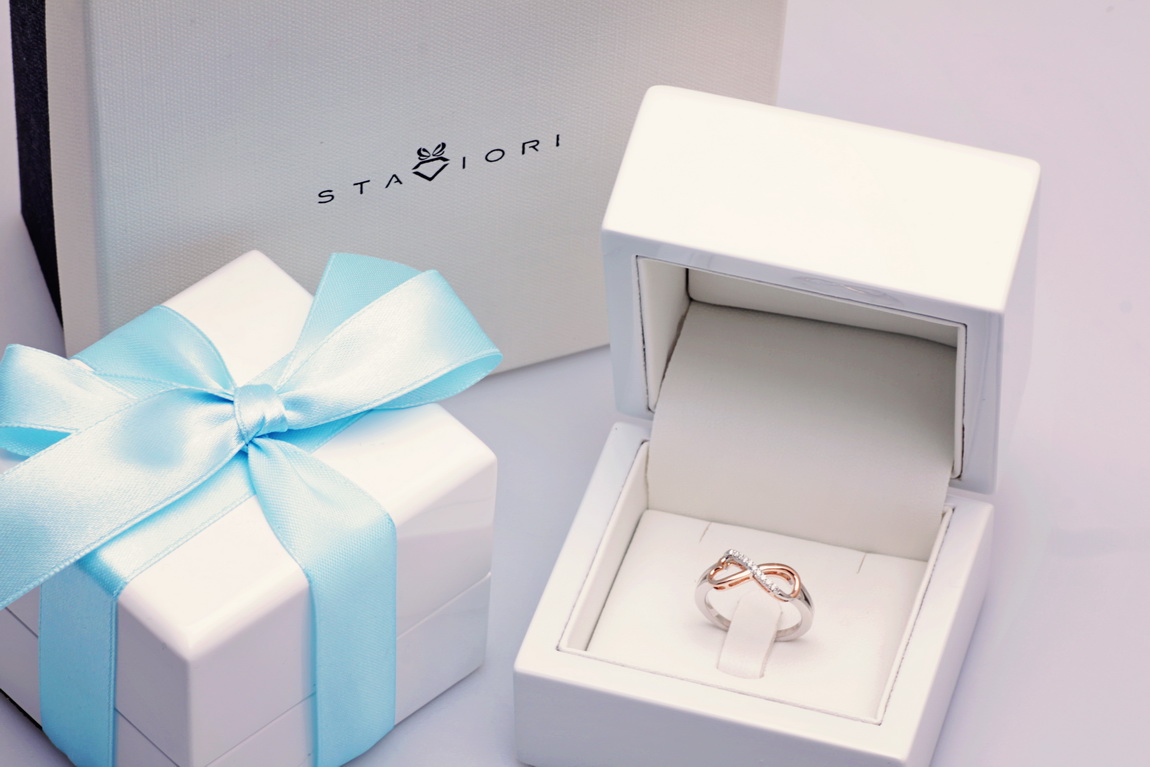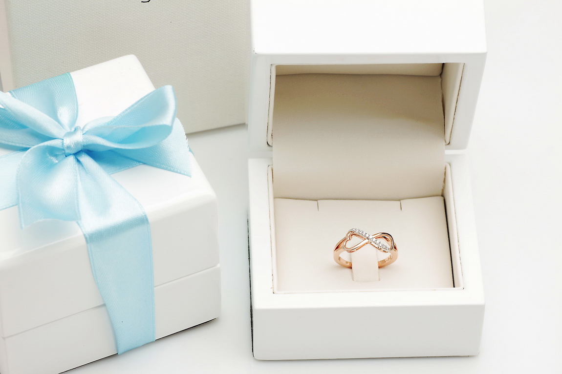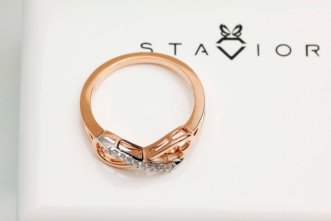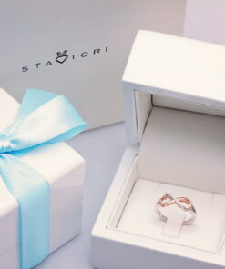 infinite love ring in rose and white gold with diamonds