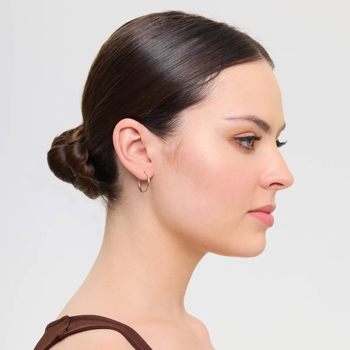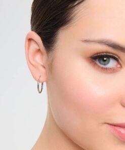 Subtelne kolczyki koła wykonane z rodowanego srebra próby 925. Ich delikatna powierzchnia o dekoracyjnym szlifie pięknie odbija światło, dodając całości elegancji i ponadczasowego charakteru. Idealne zarówno na co dzień, jak i jako uzupełnienie wieczorowych stylizacji.