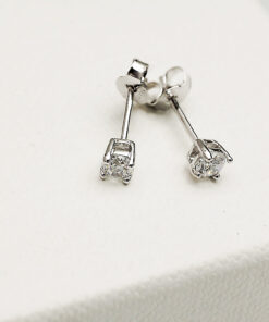 Subtelne kolczyki wykonane ze srebra próby 0,925 z niewielką, lśniącą cyrkonią o średnicy 3 mm. Klasyczna czteroramienna oprawa doskonale eksponuje kamień, nadając biżuterii delikatny, ale elegancki charakter. Idealne jako codzienny dodatek lub pierwsza biżuteria dla młodej damy. Minimalizm i ponadczasowy styl w jednym.