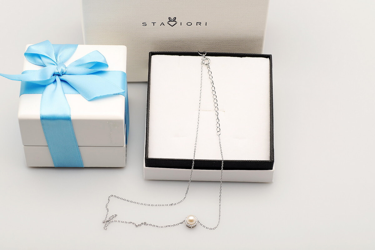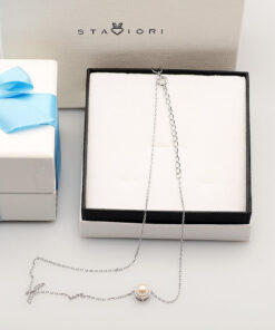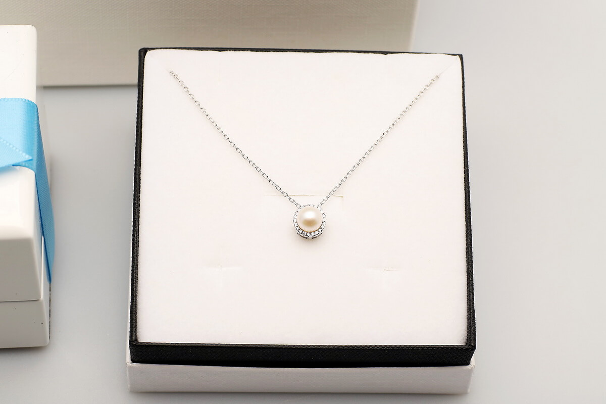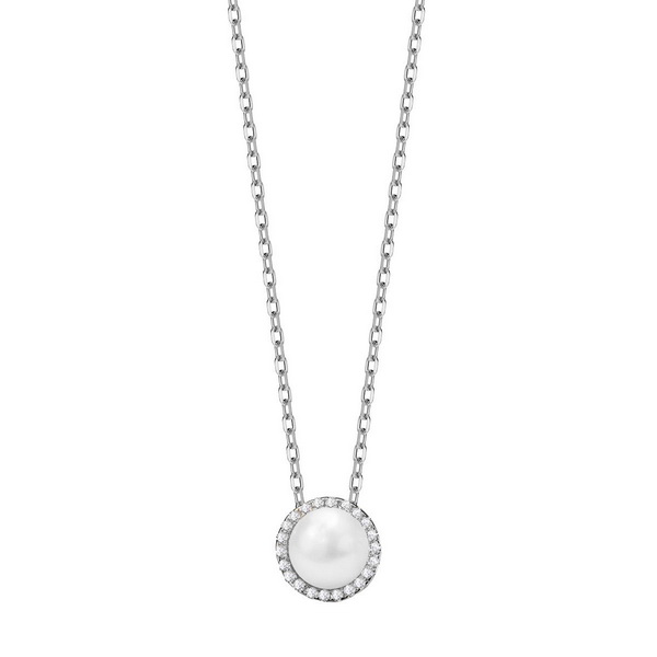 Subtelny naszyjnik ze srebra próby 0,925 z naturalną, hodowaną perłą słodkowodną, otoczoną połyskującymi cyrkoniami. Połączenie klasycznej perły z blaskiem srebra i lśniącymi cyrkoniami tworzy wyjątkowo elegancką kompozycję, która podkreśla kobiecą delikatność i styl. Naszyjnik posiada możliwość regulacji długości, co pozwala dopasować go do każdej stylizacji. Idealny wybór na prezent dla wyjątkowej osoby lub jako ozdoba na specjalne okazje.