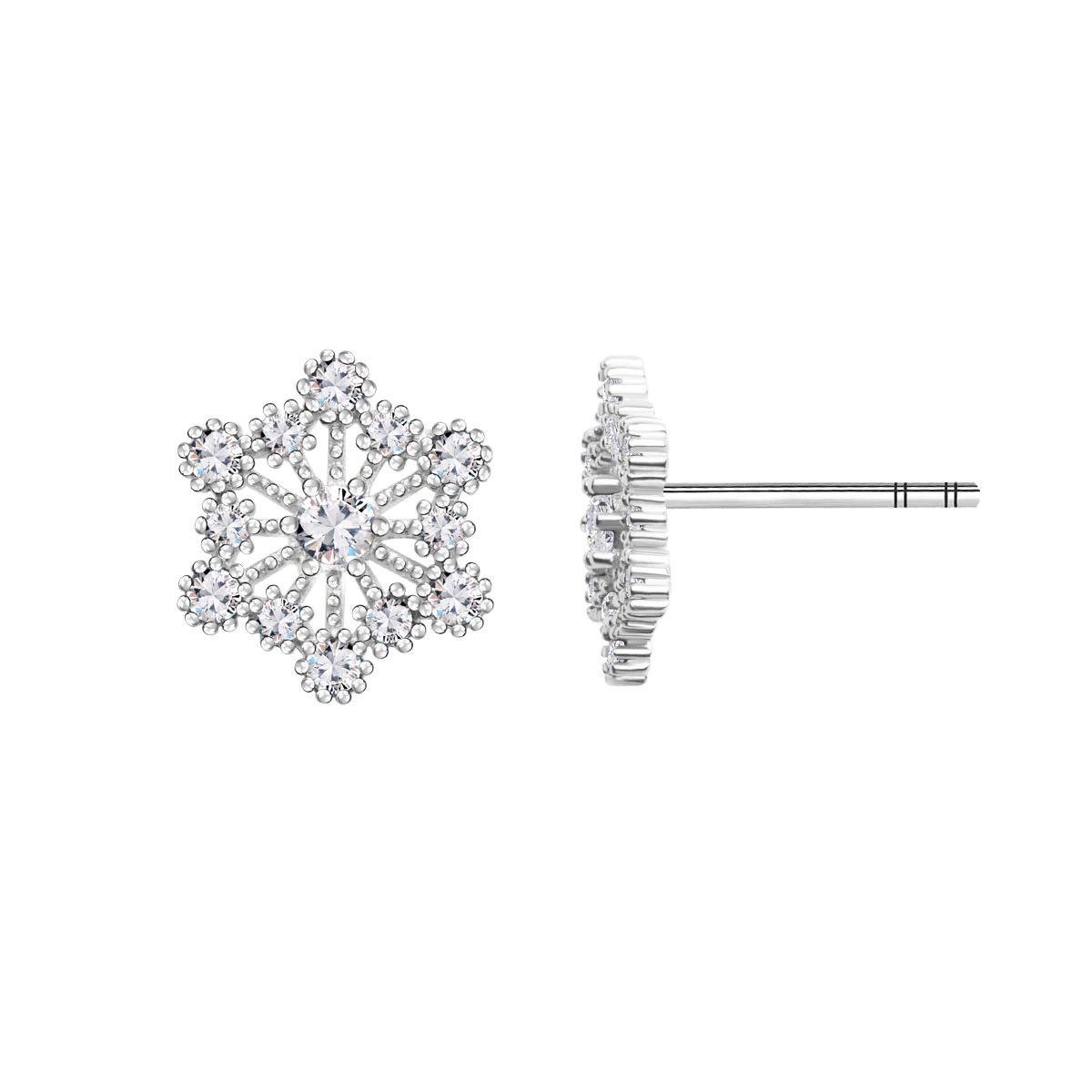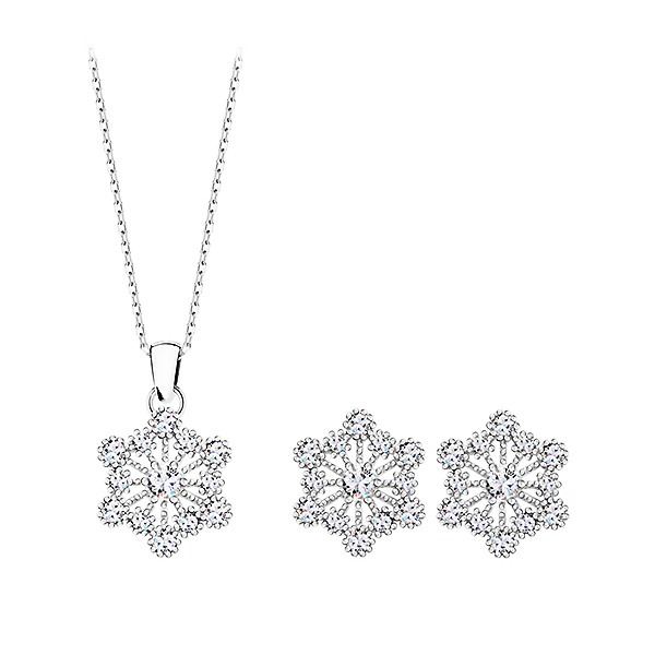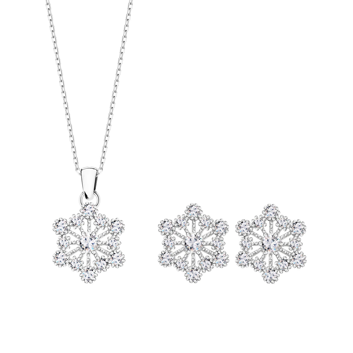 Snowflake silver jewellery set with zircons - earrings and necklace
