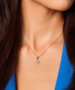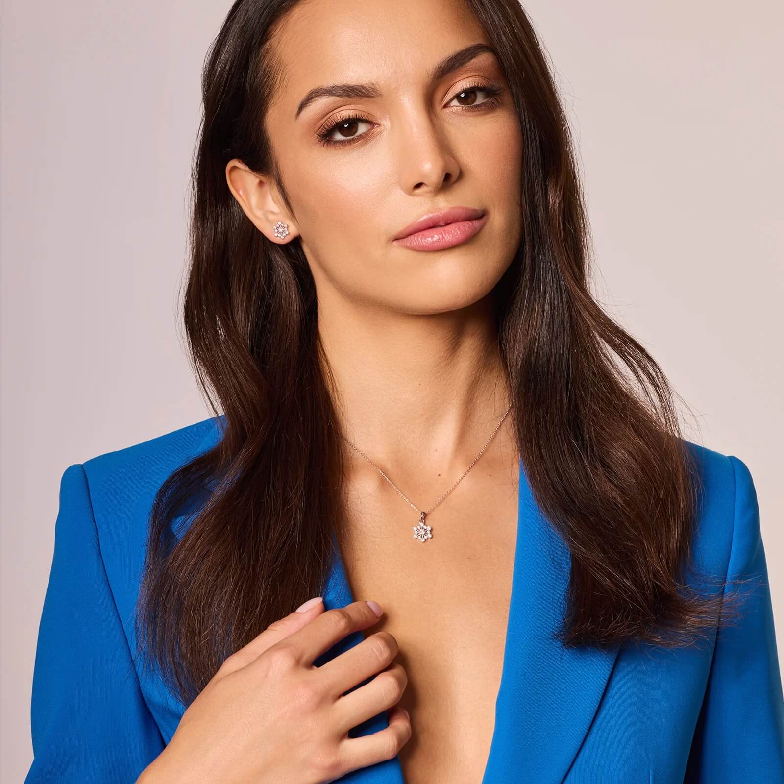 Wyjątkowy komplet biżuterii, na który składają się kolczyki oraz naszyjnik wykonane z rodowanego srebra próby 0,925. Motyw śnieżynki ozdobiony lśniącymi cyrkoniami zachwyca subtelnością i zimowym blaskiem. Kolczyki na wygodnych sztyftach oraz delikatny łańcuszek pięknie podkreślają urodę i dodają uroku każdej stylizacji. To doskonały wybór na prezent dla miłośniczek oryginalnych i stylowych dodatków.