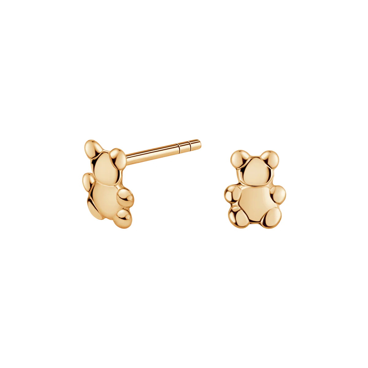 Charming earrings crafted from 8k yellow gold, featuring a delicate teddy bear motif. The smooth, polished surface reflects light beautifully, giving the jewelry a unique glow despite its subtle size. Classic stud backings ensure comfort and security for everyday wear. These earrings are a perfect gift choice, gracefully complementing a child’s outfit or serving as a sentimental accessory for fans of minimalist design.