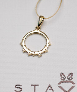 A delicate and feminine pendant in the form of a gold circle decorated with sparkling zircons. Made of 0.333 yellow gold, it delights with subtle brilliance and elegance. It perfectly matches everyday styling, but also adds class to special occasions. A symbol of perfection and harmony - the perfect gift for a woman with refined taste.