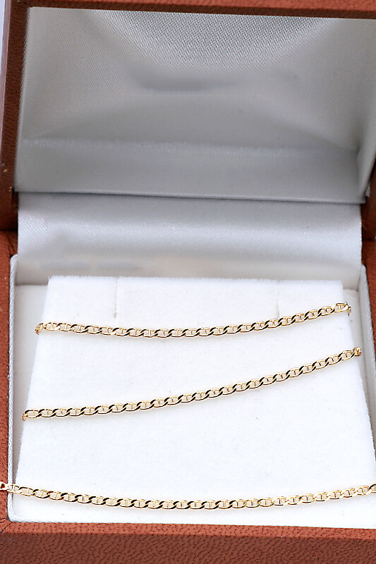 Wyjątkowy łańcuszek o długości 50cm wykonany z żółtego złota próby 0,333. Splot Gucci, znany również jako splot mariner, zachwyca charakterystycznymi ogniwami inspirowanymi łańcuchem marynarskim. Delikatny połysk oraz oryginalny wzór sprawiają, że ten model idealnie podkreśla styl i elegancję zarówno kobiet, jak i mężczyzn. Doskonały do noszenia solo lub z ulubioną zawieszką – ponadczasowy dodatek na każdą okazję.