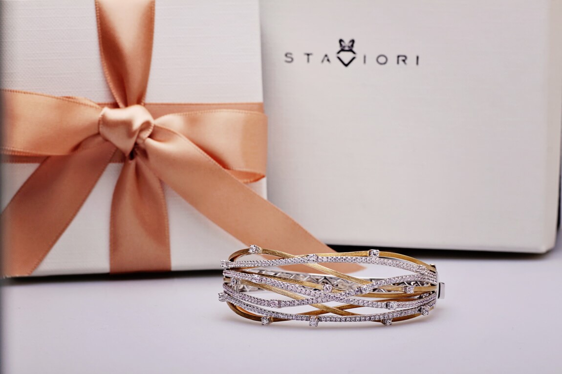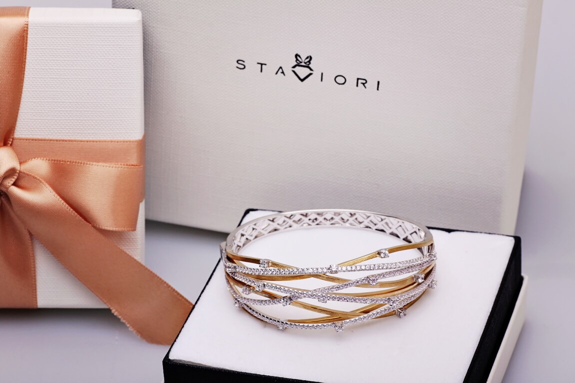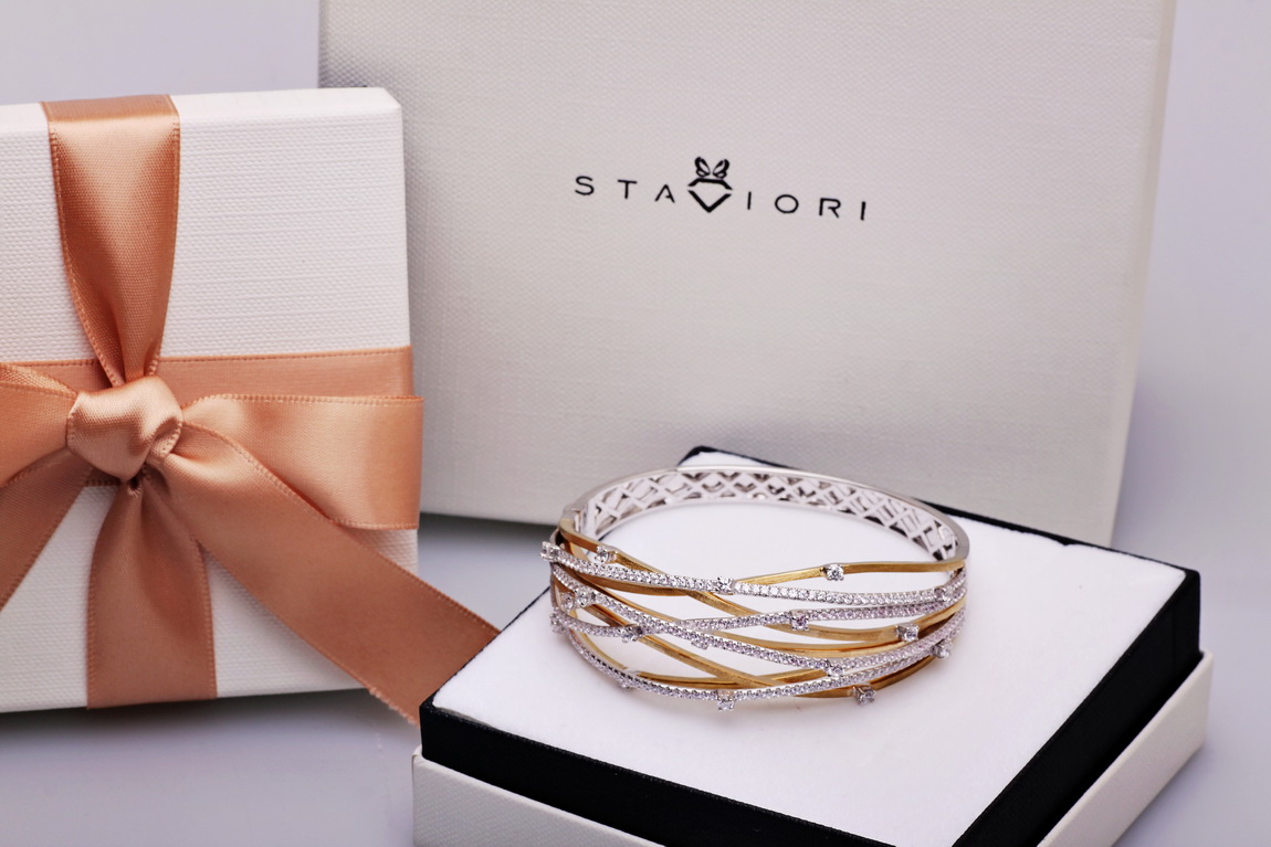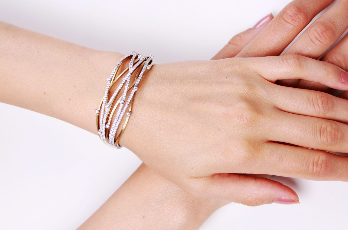 Spektakularna bransoleta wykonana z żółtego i białego złota próby 750, wysadzana aż 270 diamentami o łącznej masie 3,43 ct w szlifie brylantowym. Przeplatające się pasma złota i diamentów tworzą niezwykle efektowną, luksusową kompozycję, która zachwyca blaskiem i elegancją. To wyjątkowa biżuteria, która podkreśli prestiż i doskonały gust swojej właścicielki.