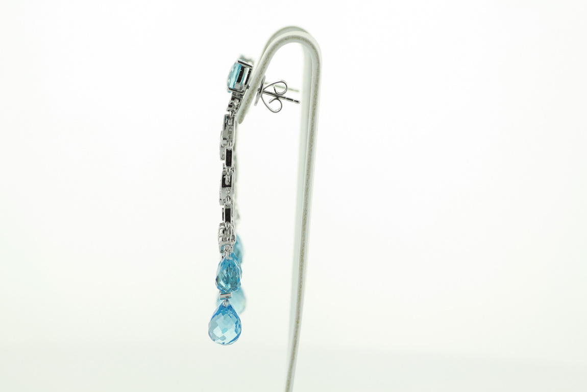 Exclusive | wiszące kolczyki boho białe złoto 750 z topazami i diamentami