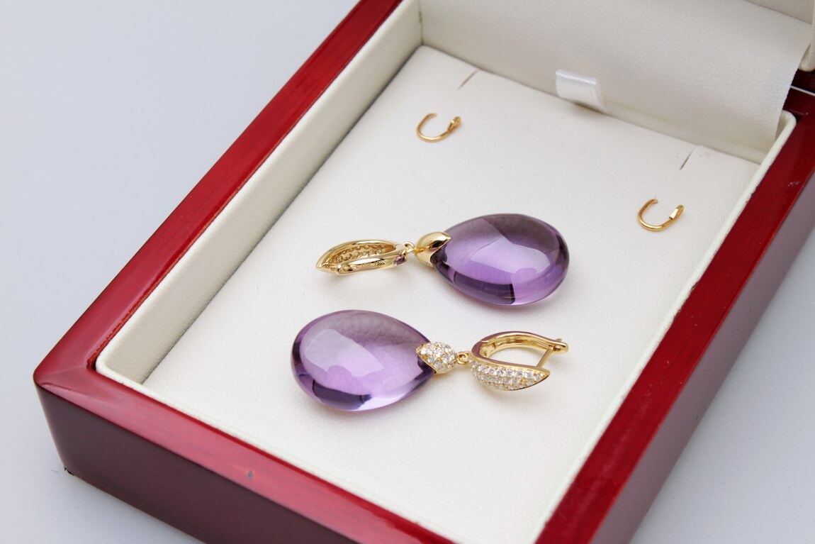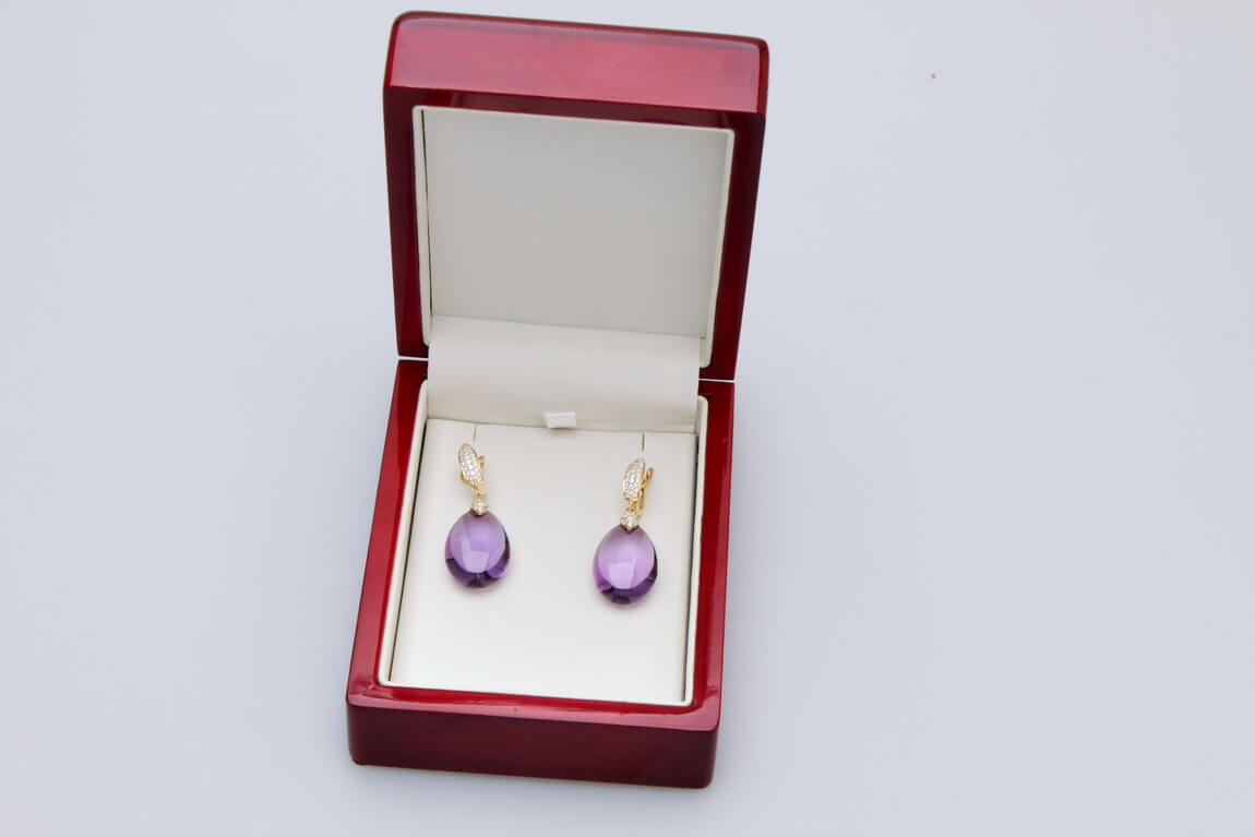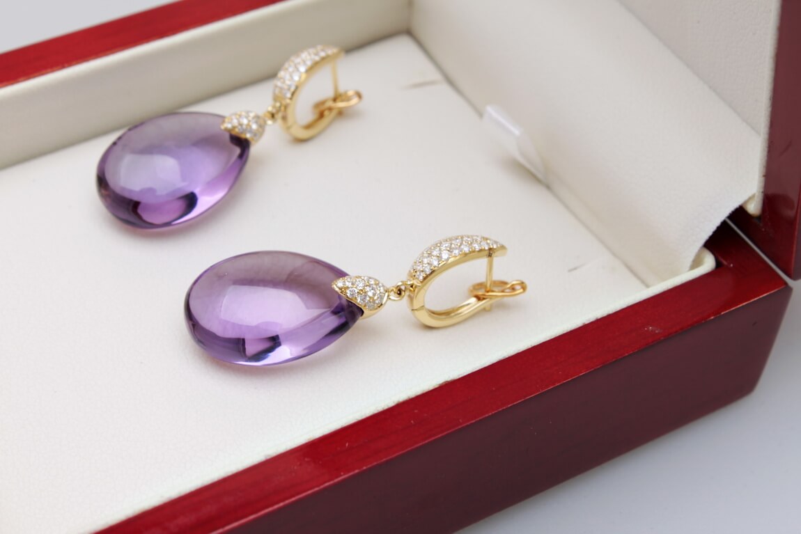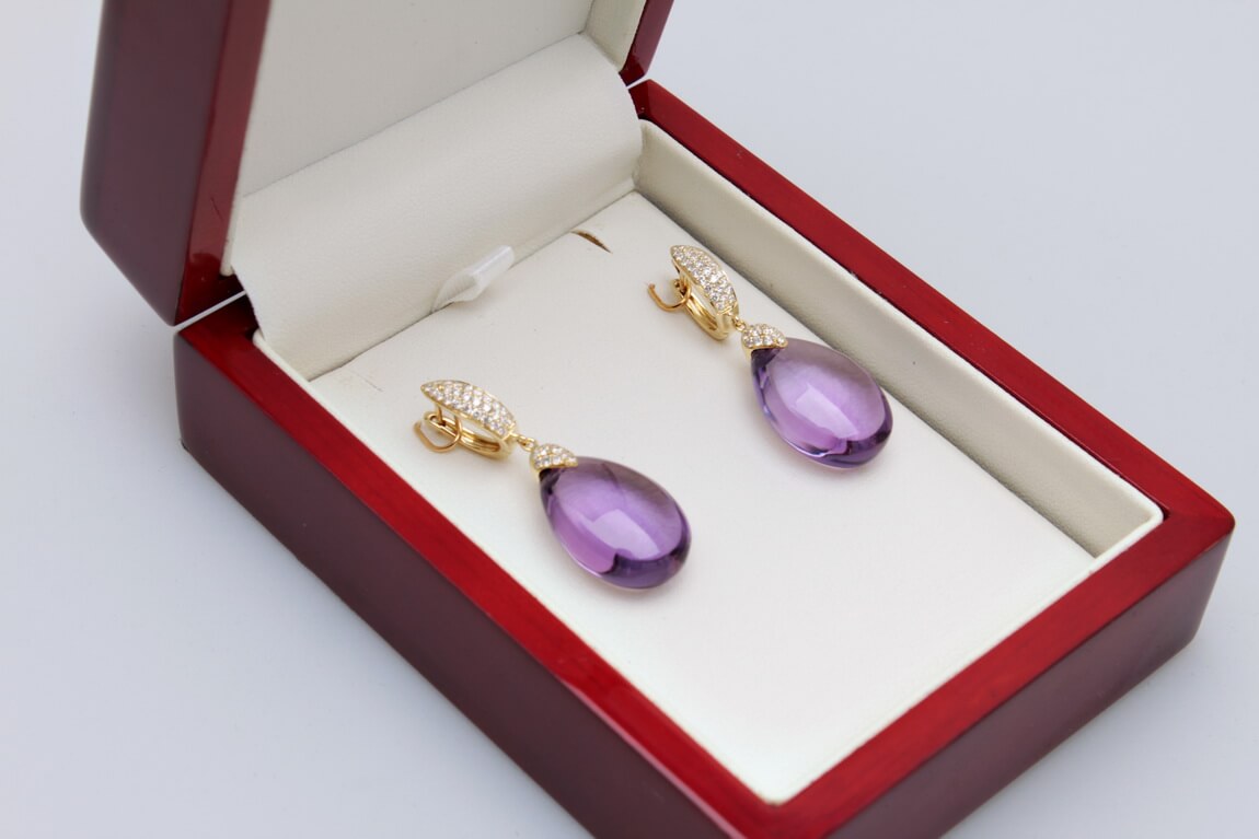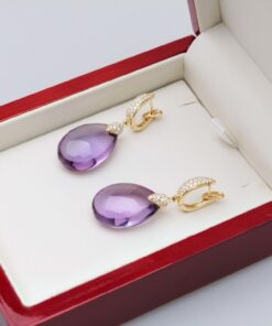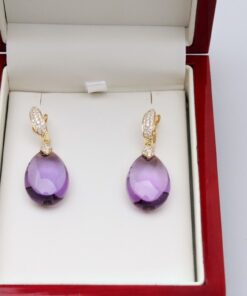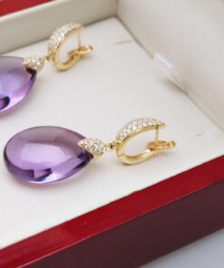 Exclusive | brylantowe wiszące złote kolczyki z ametystem