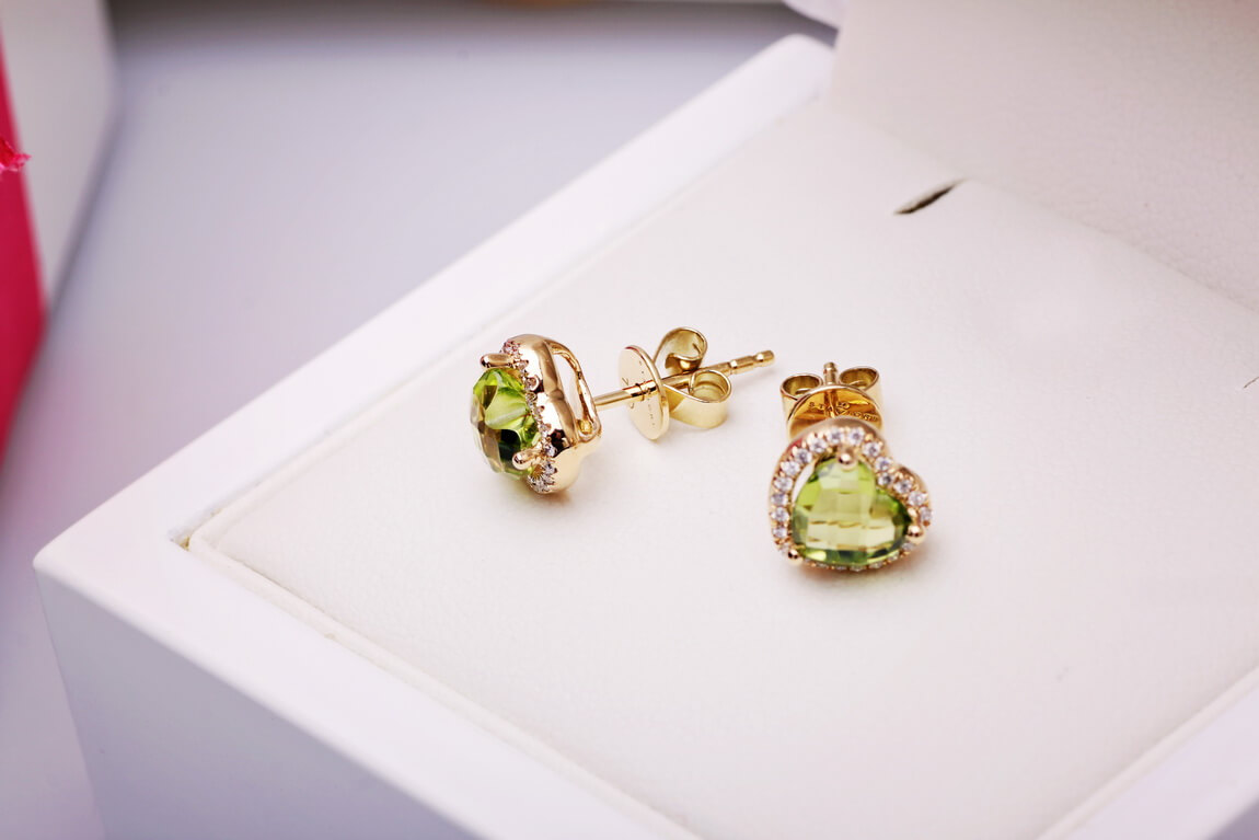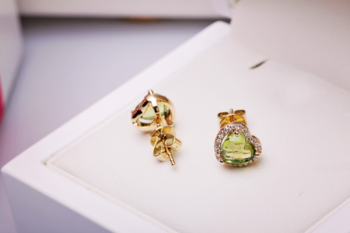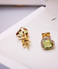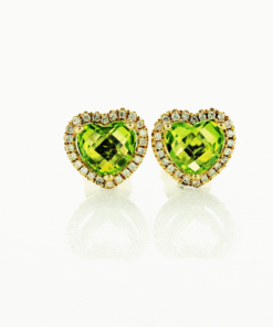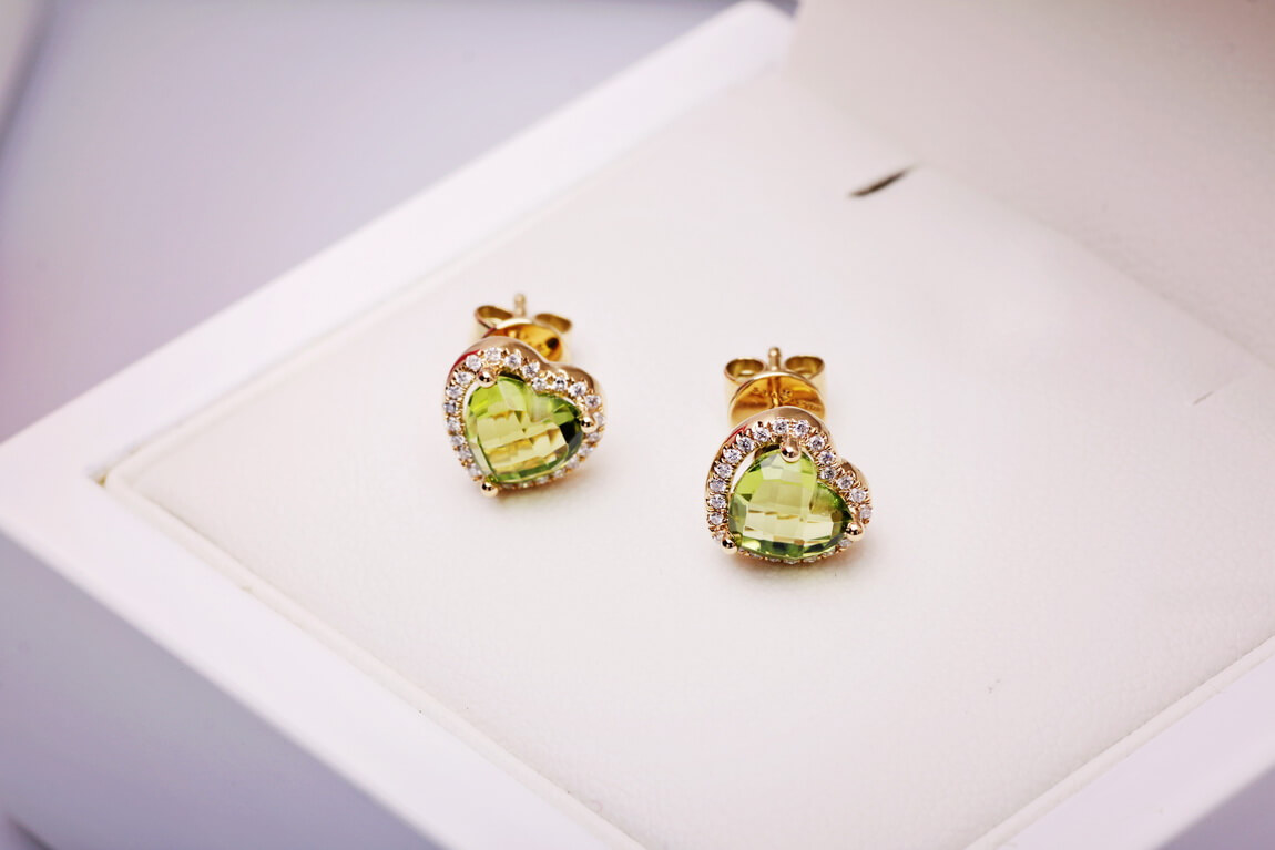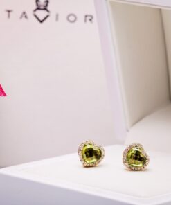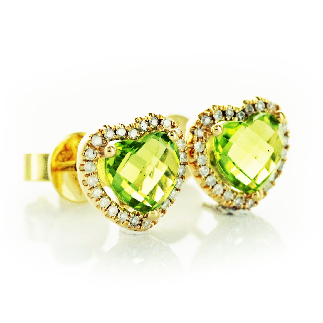Exclusive | Przepiękne zielone brylantowe kolczyki serduszka z perydotami