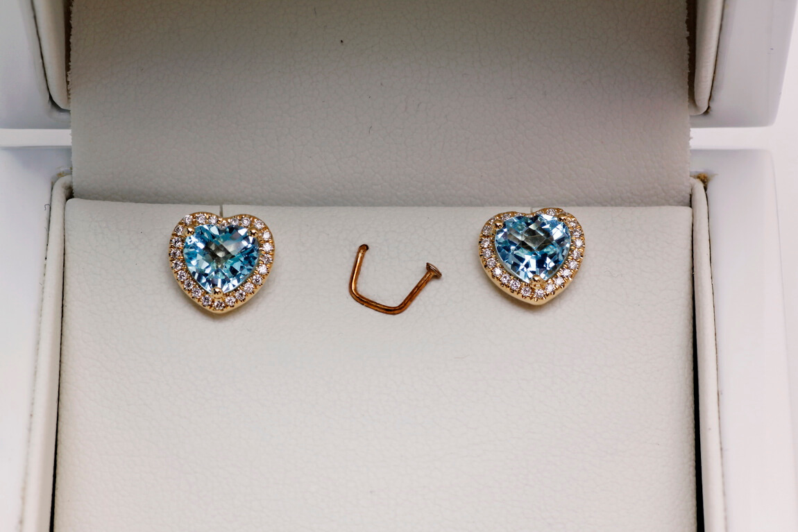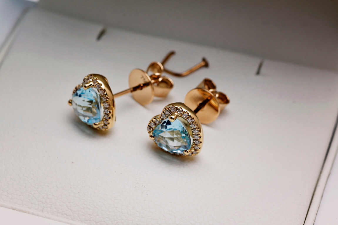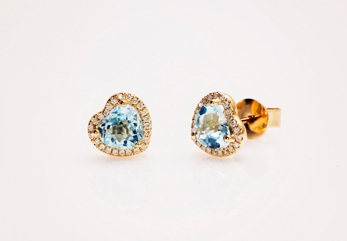 Exclusive | Złote 18-karatowe brylantowe kolczyki serca z topazami