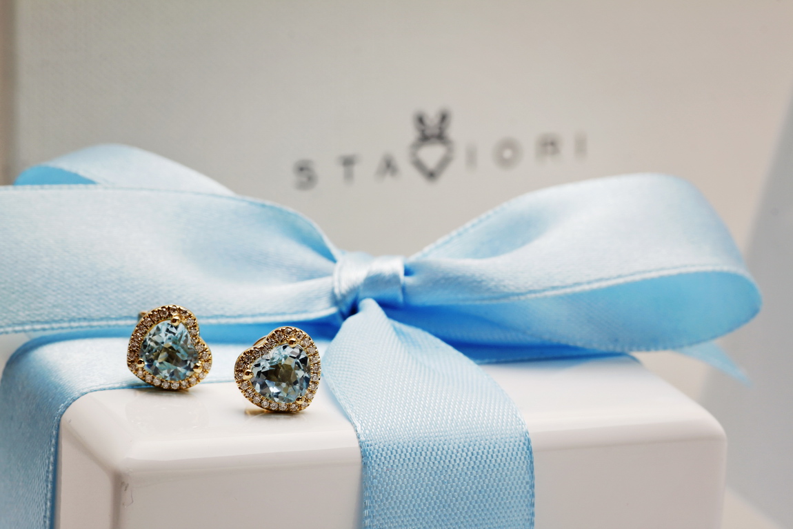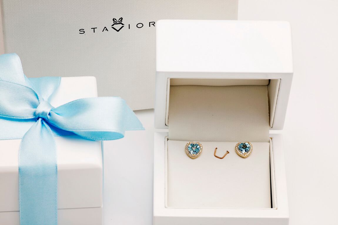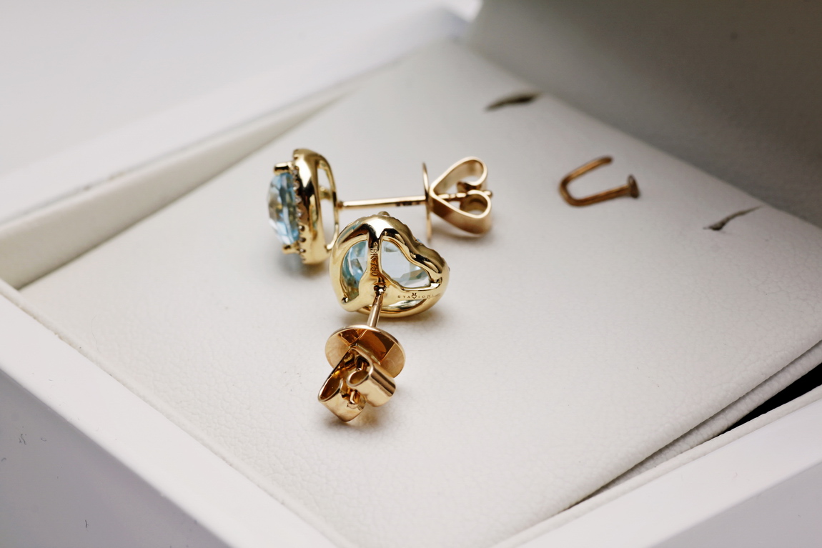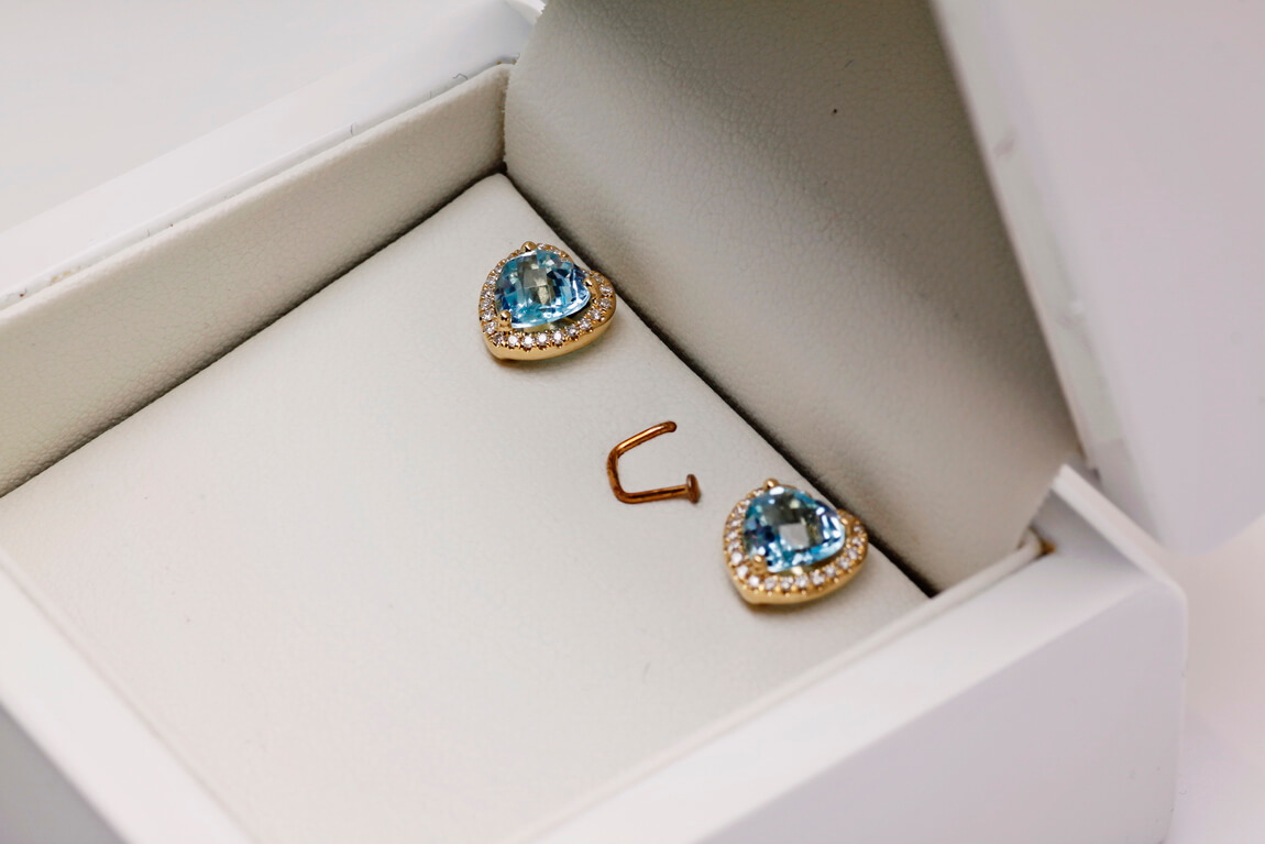 Exclusive | Złote 18-karatowe brylantowe kolczyki serca z topazami