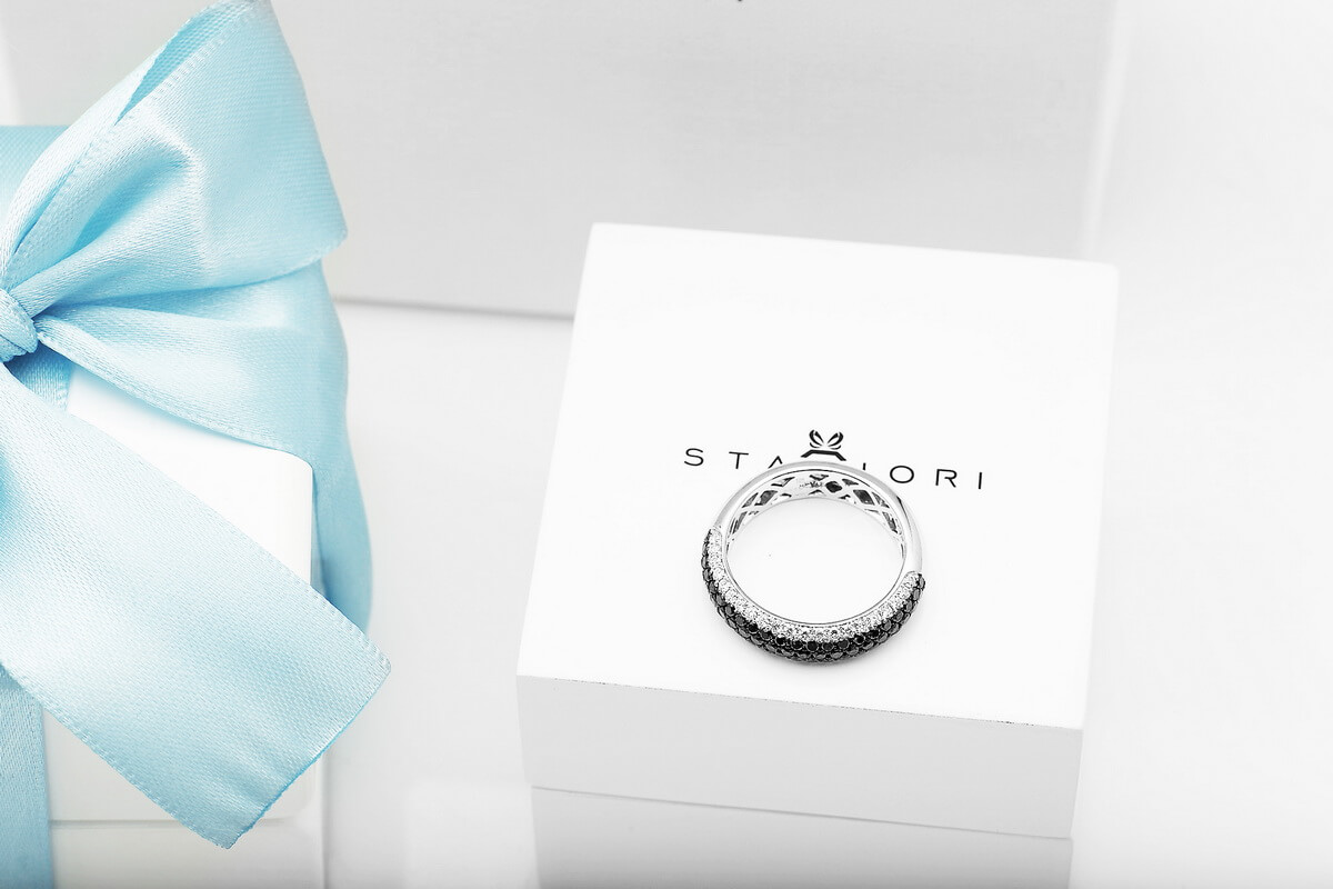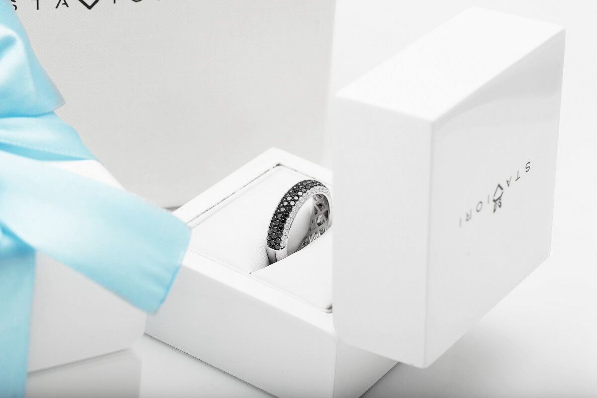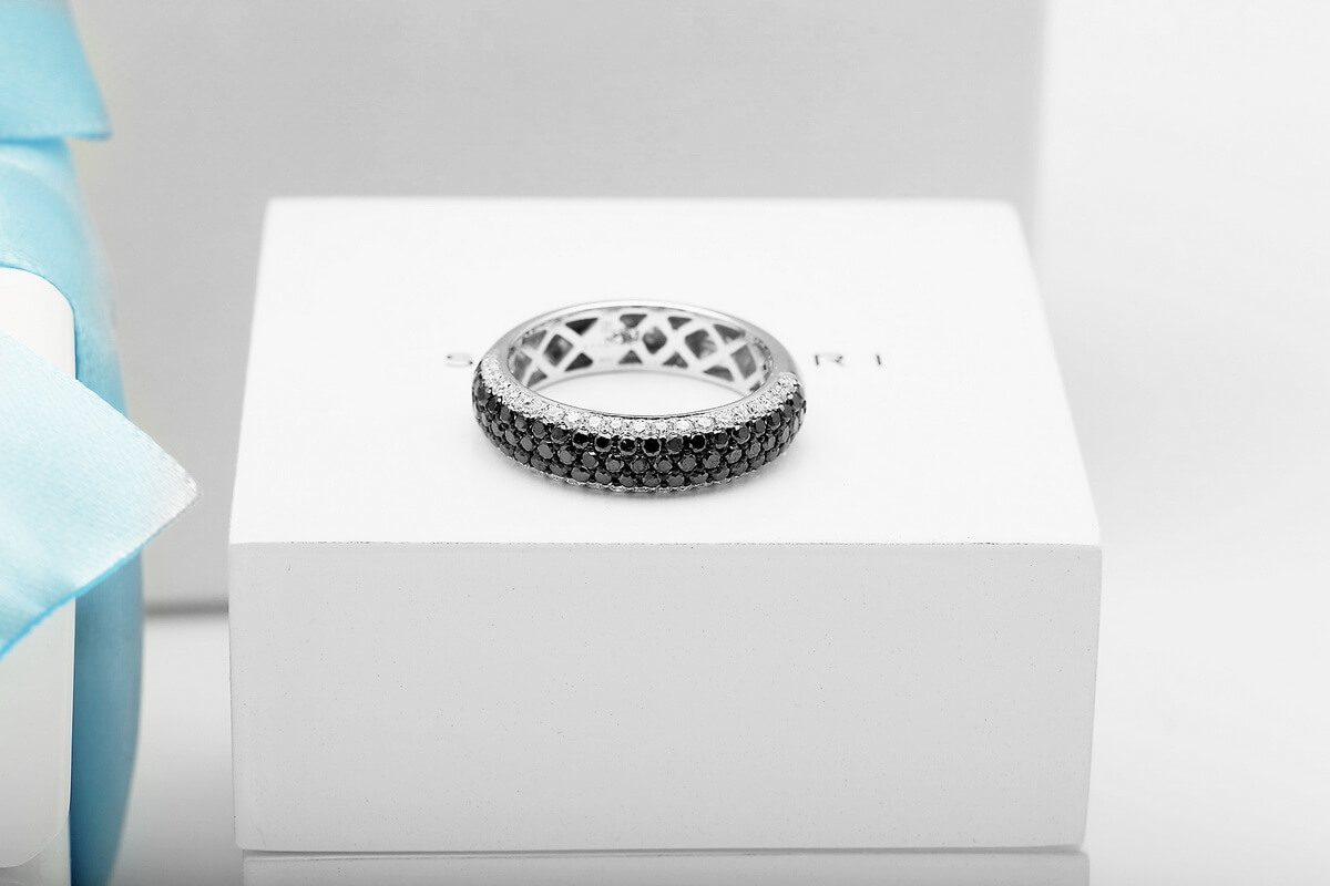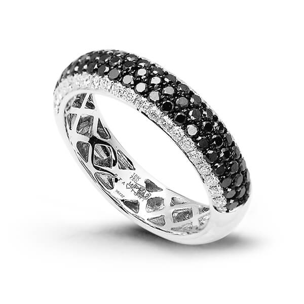 Exclusive | pierścionek obrączka z czarnymi i białymi diamentami w złocie 750