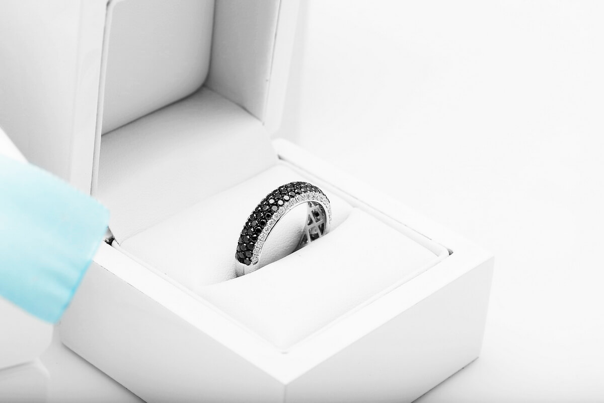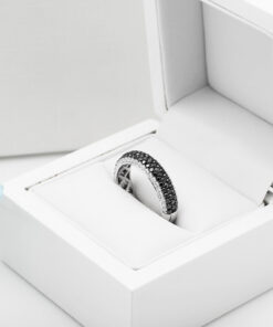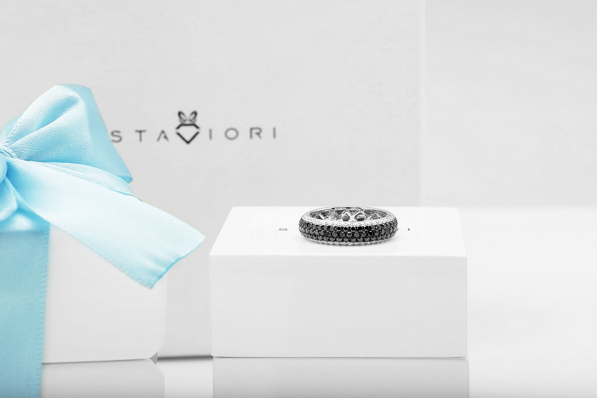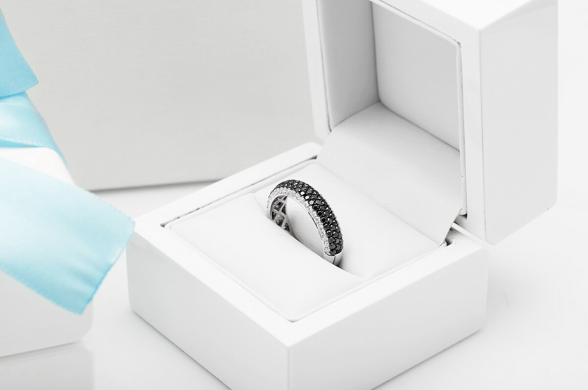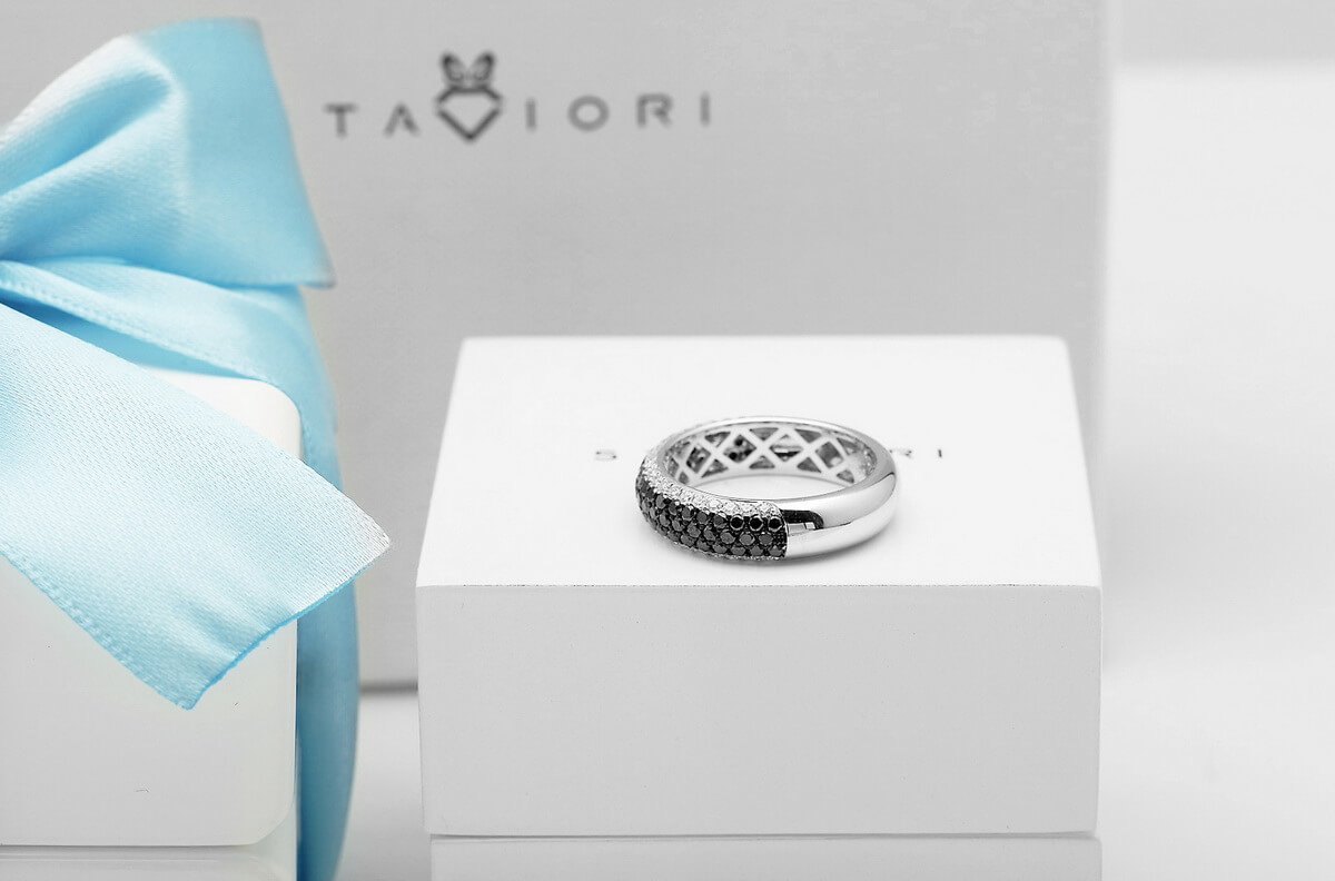 Exclusive | pierścionek obrączka z czarnymi i białymi diamentami w złocie 750