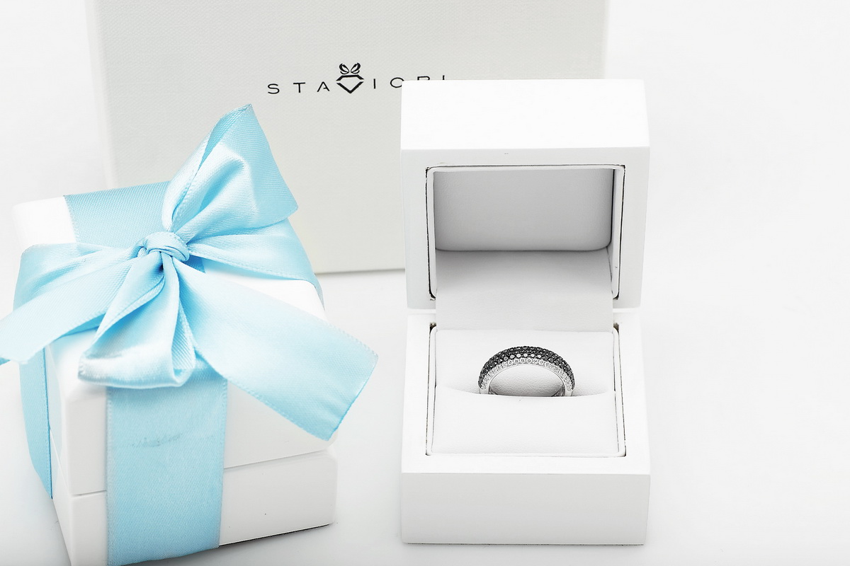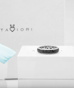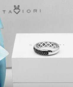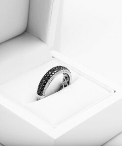 Nowoczesna elegancja i zmysłowy kontrast – ten wyjątkowy pierścionek z białego złota próby 0,750 zachwyca połączeniem białych i czarnych diamentów. 42 białe brylanty o łącznej masie 0,47 ct idealnie współgrają z 65 czarnymi diamentami (0,93 ct), tworząc hipnotyzujący efekt głębi i blasku. Ponadczasowa forma i luksusowe wykończenie czynią ten model doskonałym wyborem dla kobiet, które cenią oryginalność i klasyczny szyk.