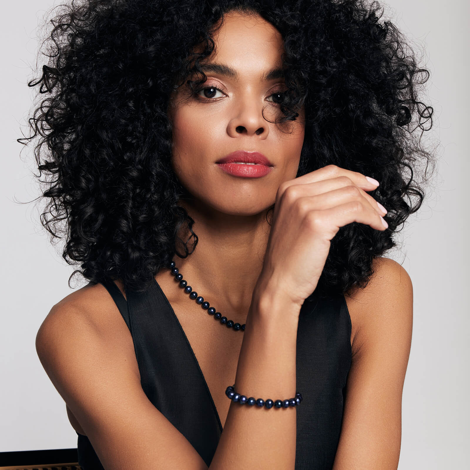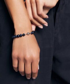Subtelna bransoletka z naturalnych słodkowodnych pereł hodowanych w głębokim, czarnym odcieniu, wykończona eleganckim zapięciem ze srebra rodowanego próby 0,925. Gładkie, lśniące perły pięknie podkreślają odcień skóry i dodają charakteru zarówno codziennym, jak i wieczorowym stylizacjom. To ponadczasowy dodatek dla kobiet kochających klasyczną elegancję w nowoczesnym wydaniu. Doskonały pomysł na prezent, który zachwyci miłośniczki perłowej biżuterii. Do kompletu dostępny jest naszyjnik z czarnymi perłami, model NSN6713.