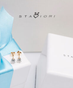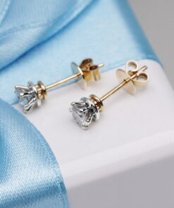 Ponadczasowa elegancja w czystej formie – te olśniewające kolczyki z 18-karatowego żółtego i białego złota to prawdziwa klasyka luksusu. Każdy z nich zdobi perfekcyjnie oszlifowany brylant o masie 0,25 ct, zamknięty w subtelnej koronie z białego złota, która pięknie eksponuje jego blask. Precyzyjne wykonanie oraz elegancki design sprawiają, że to idealna biżuteria zarówno na co dzień, jak i na wyjątkowe okazje. Doskonały wybór dla kobiet kochających prostotę w wyrafinowanym wydaniu.