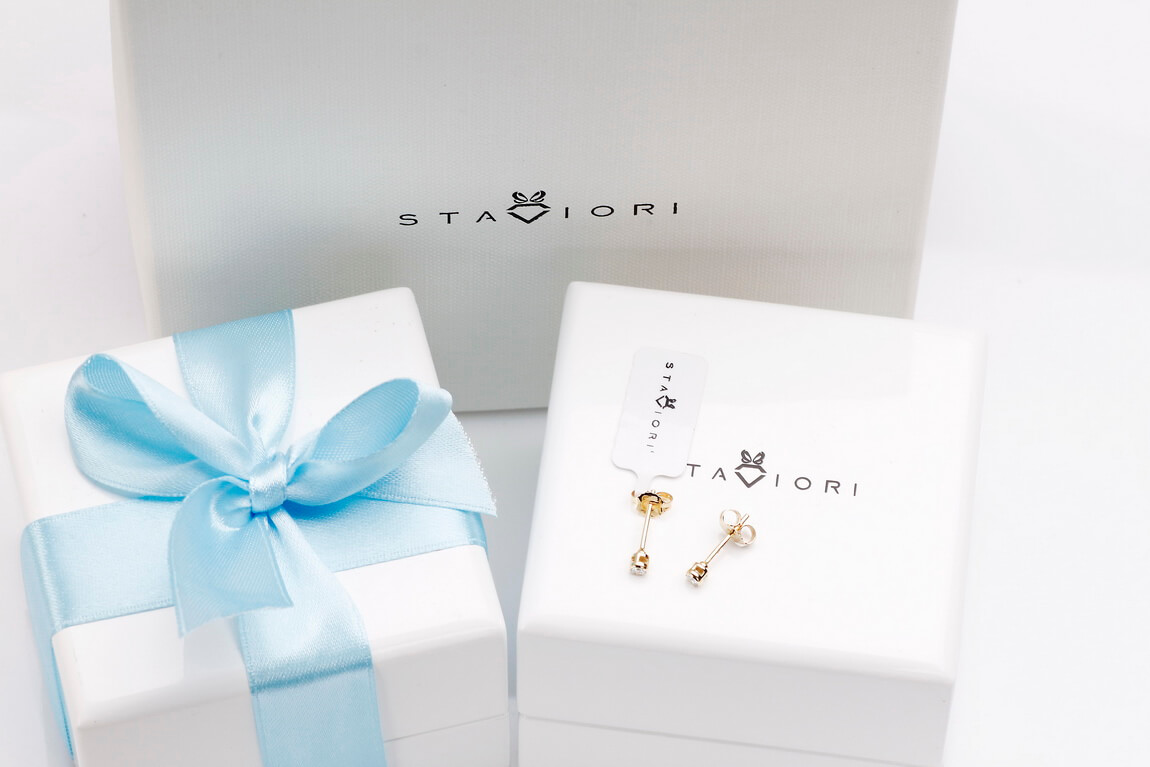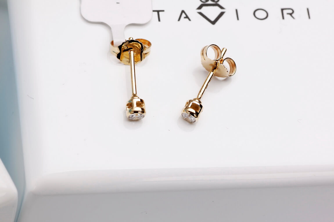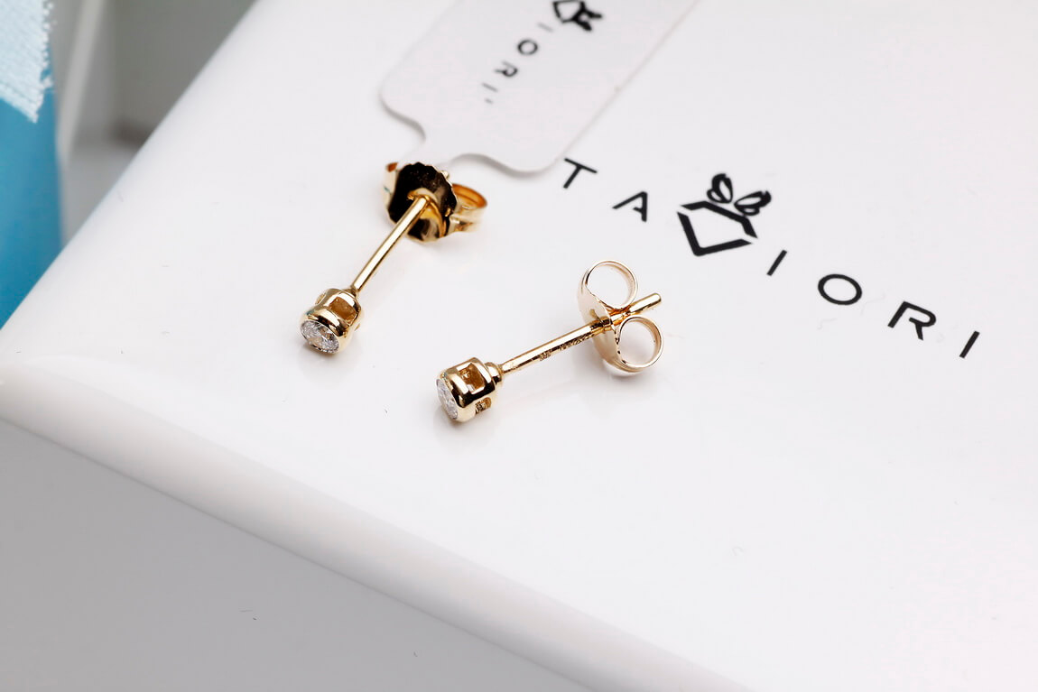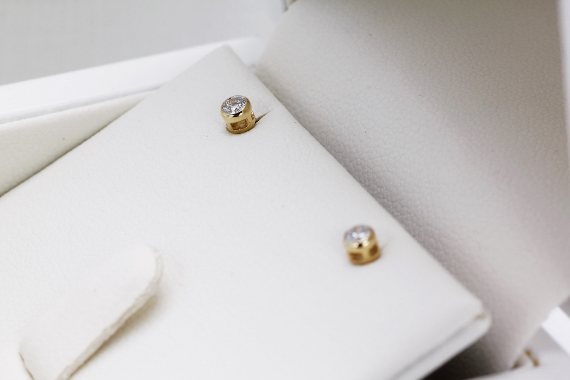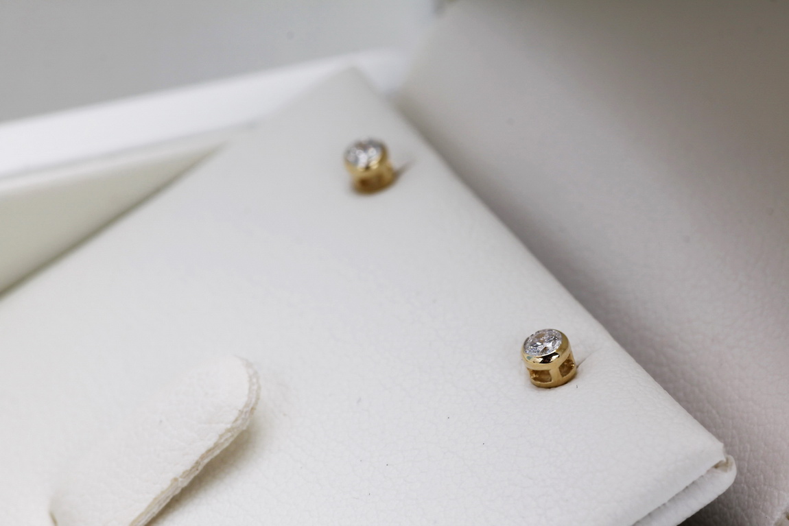 Złote kolczyki z brylantami 0,10ct w gładkiej oprawie